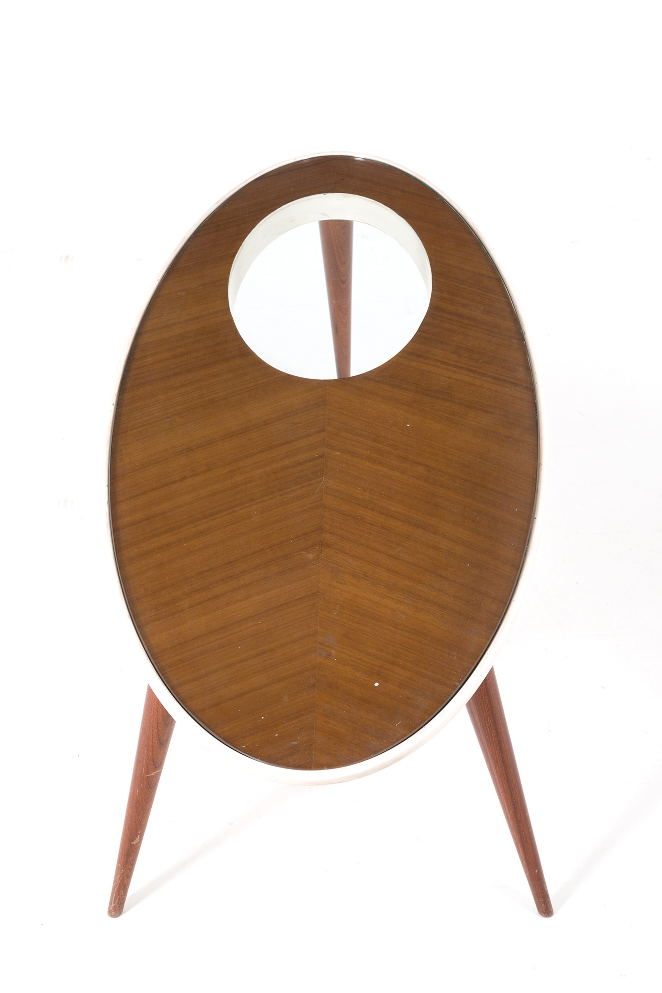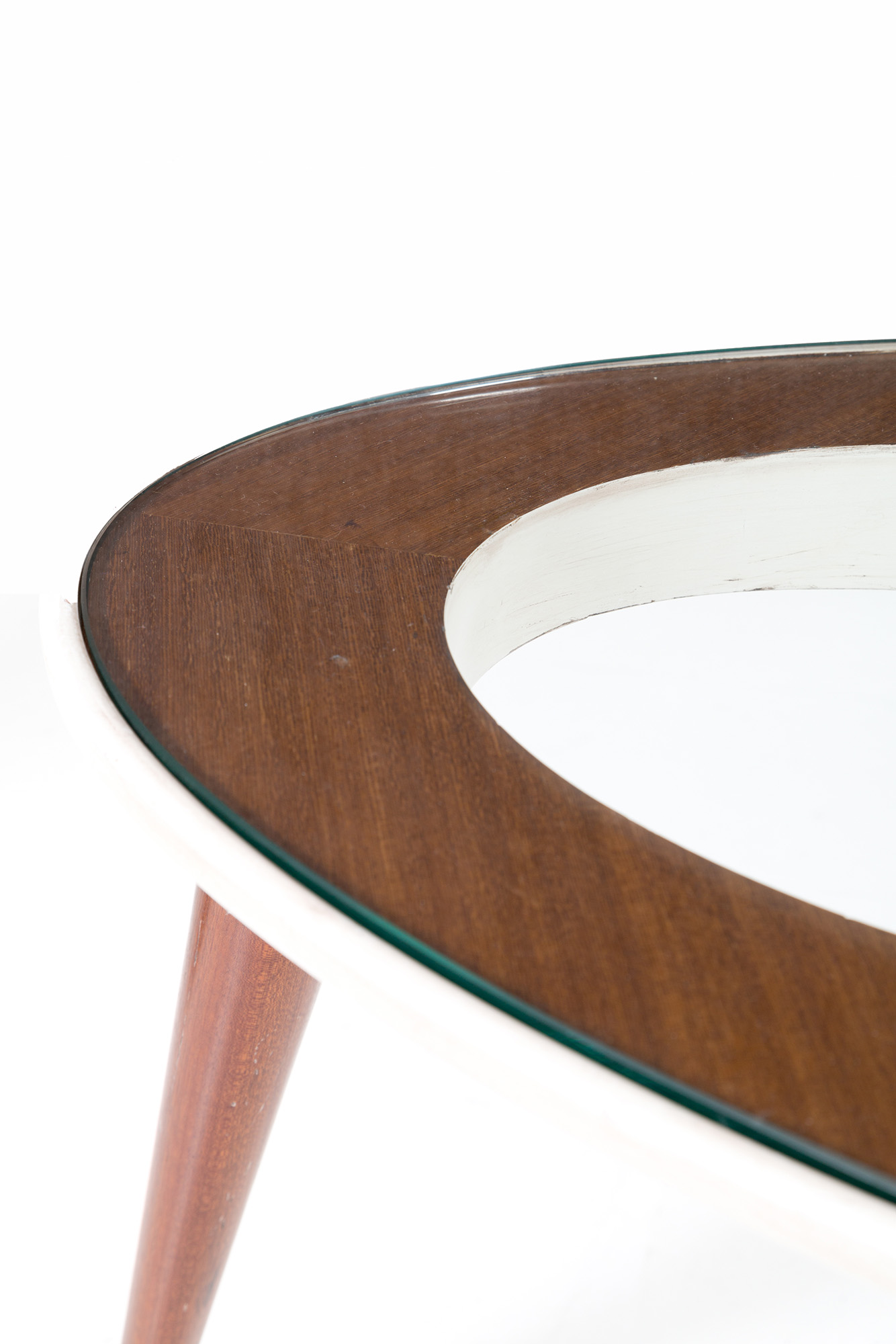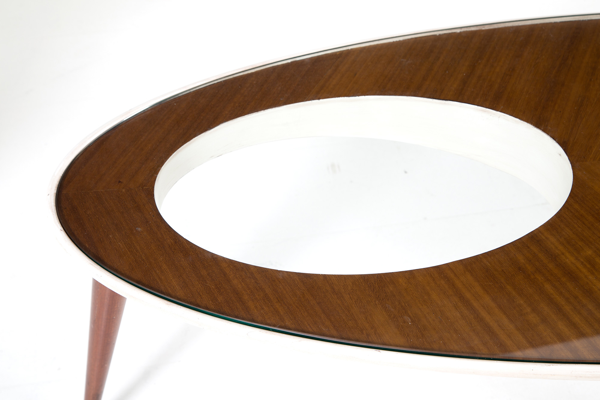 Tavolino in legno laccato e legni pregiati nello stile di Gio Ponti (Milano, 1891-1979). XX secolo. Mis. Lung. cm. 111 Alt. cm. 46 Prof. cm. 48 ca.