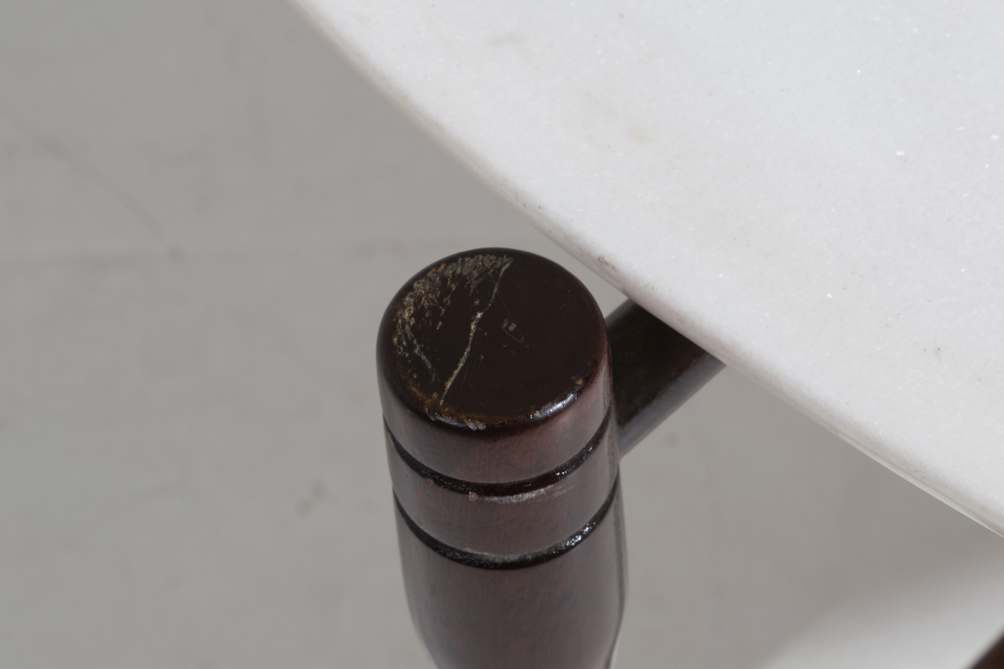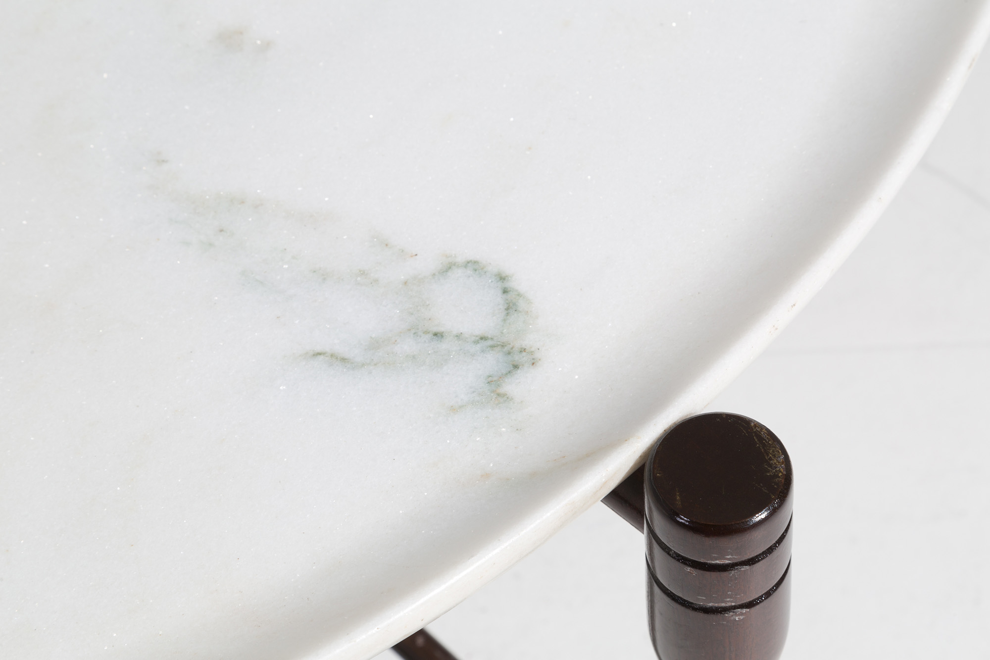 GIUSEPPE SCAPINELLI (Modena, 1891 - San Paolo, 1982). Importante tavolino in legno con piano in marmo bianco. Anni '50. Mis. Alt. cm. 44 Diam. cm. 108 ca.
