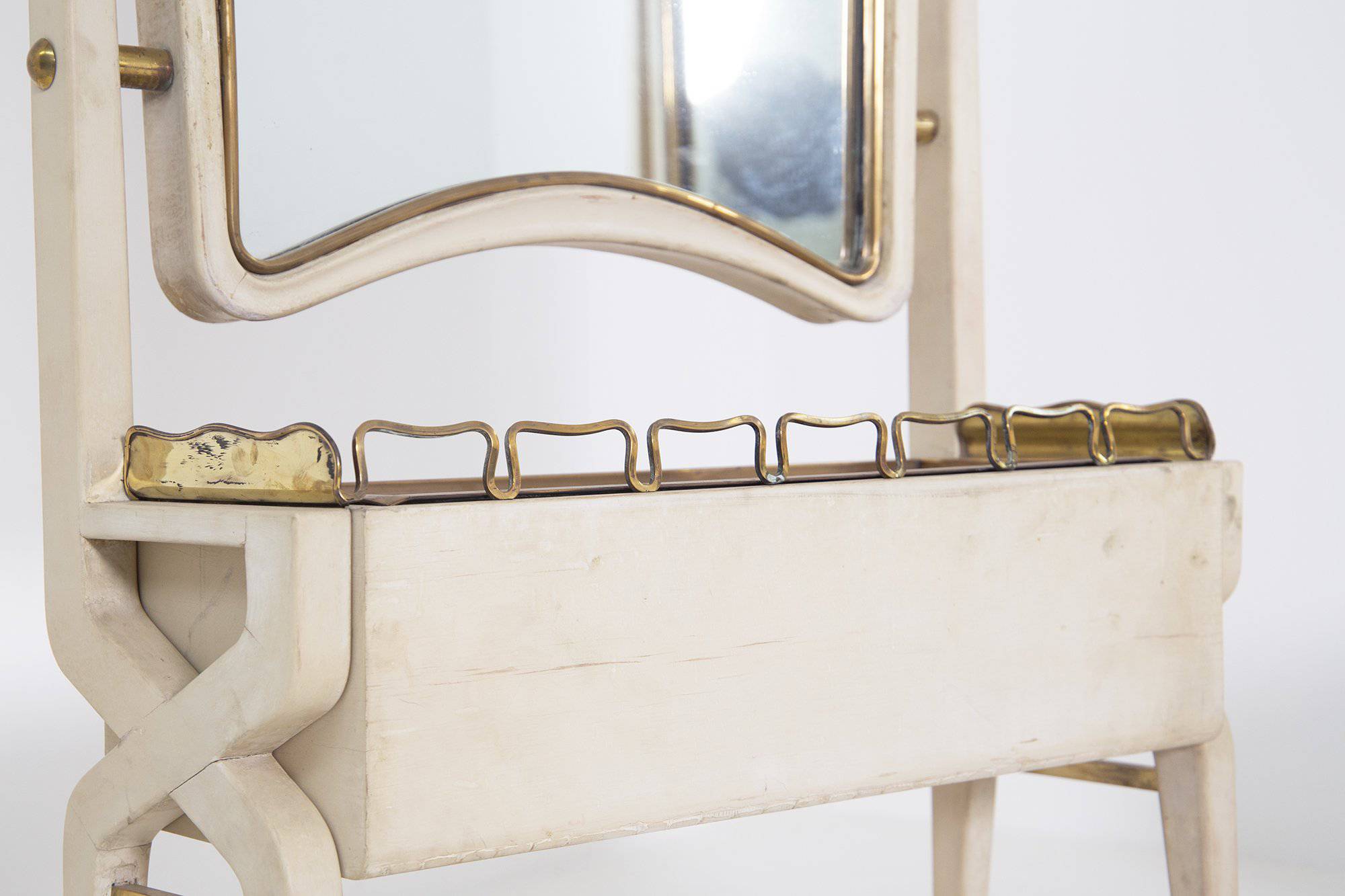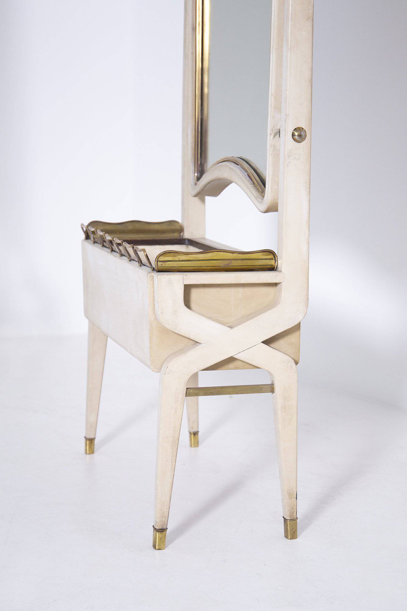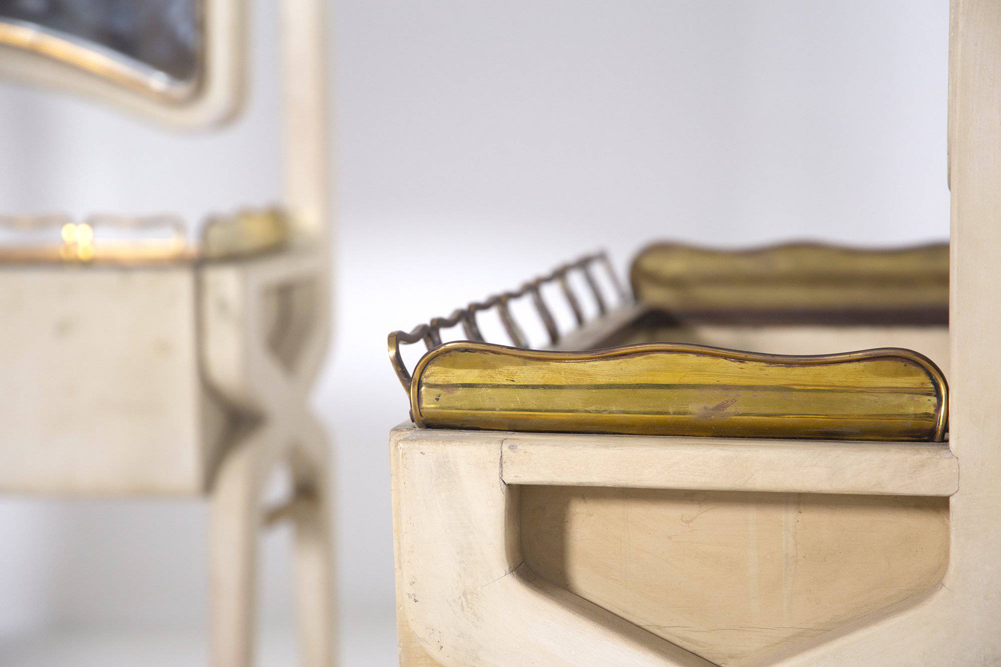 PIETRO LINGERI (Attr.) (Bolvedro, 1894-1968). Coppia di specchiere da muro in legno con decorazioni floreali e rifinitura in ottone. Anni '40. Mis. Lung. cm. 75 Alt. cm. 190 Prof. cm. 31 ca.
