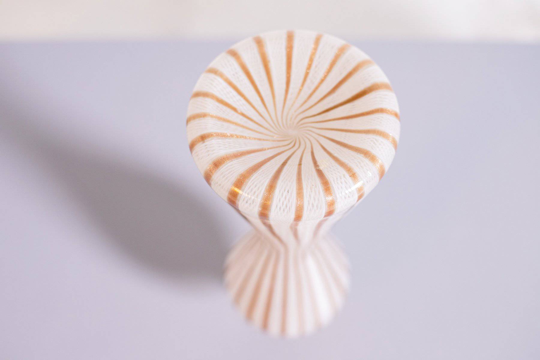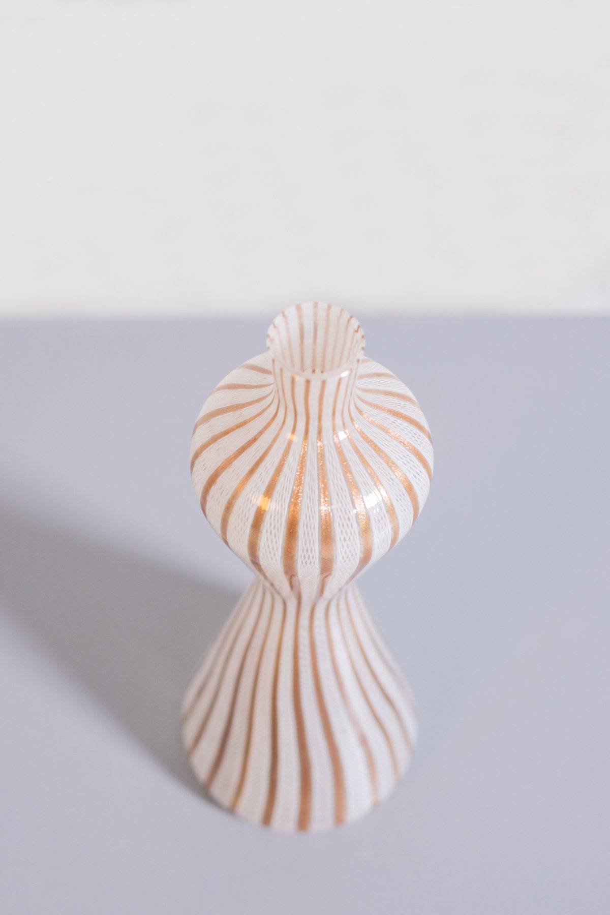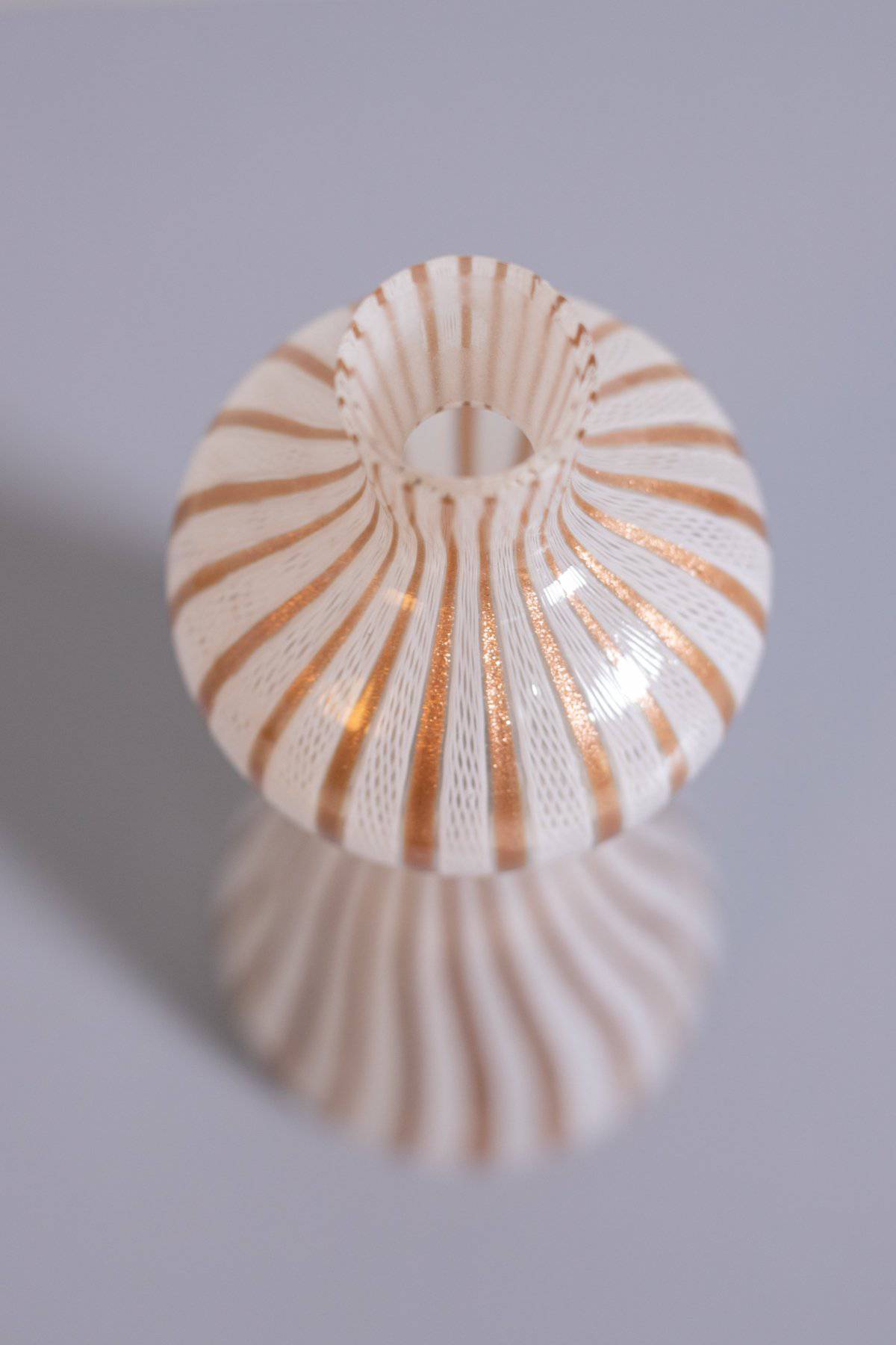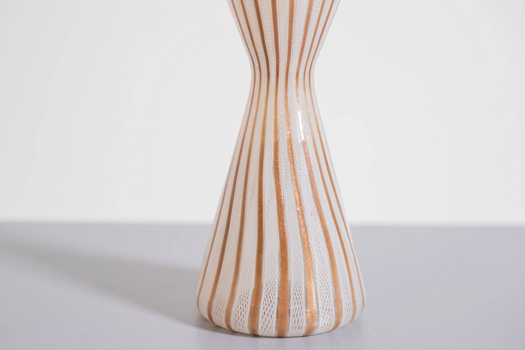 Vaso a clessidra in vetro di Murano a reticello. Produzione VENINI. Anni '50. Mis. Alt. cm. 30 Diam. cm. 10 ca.