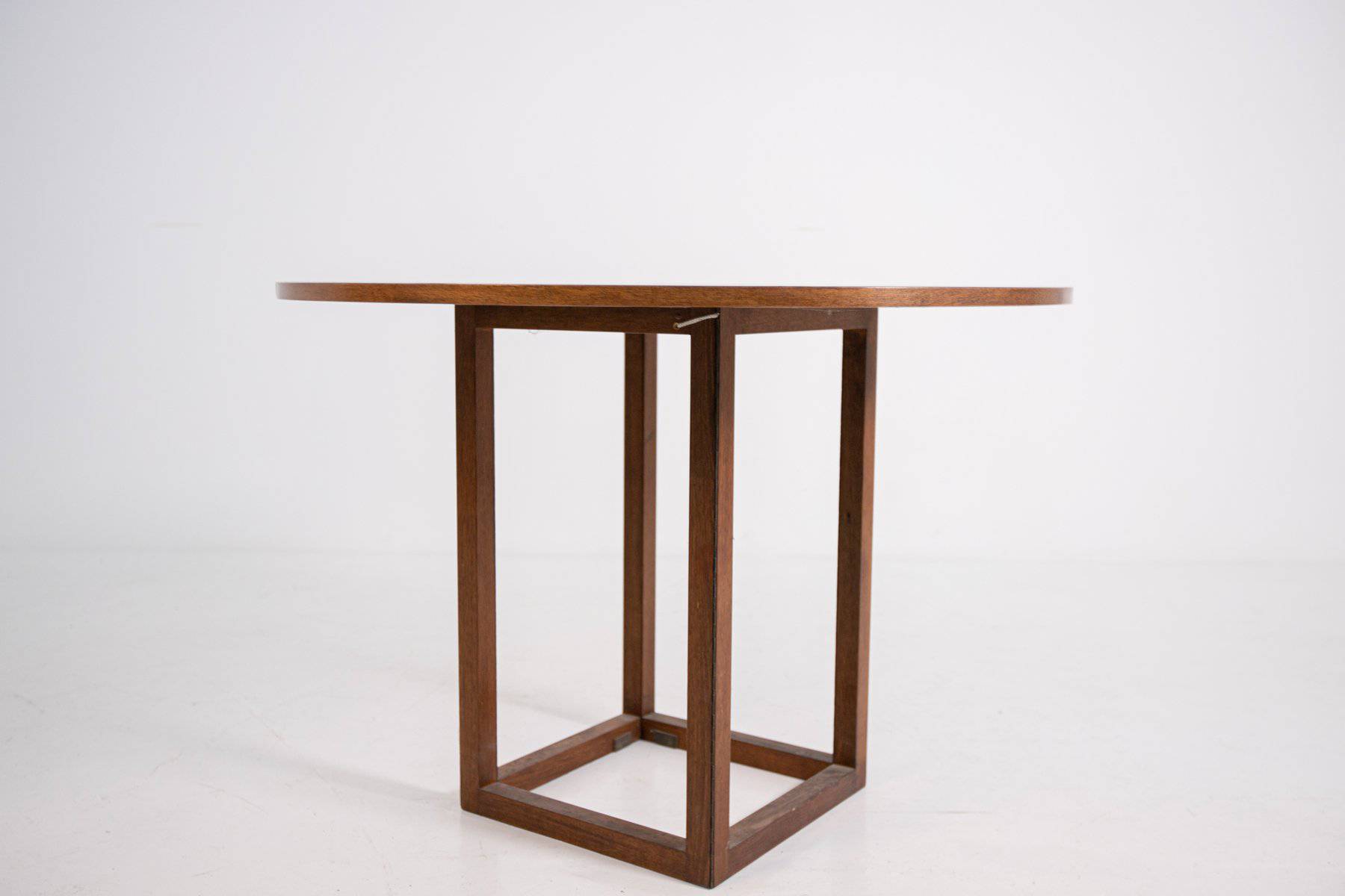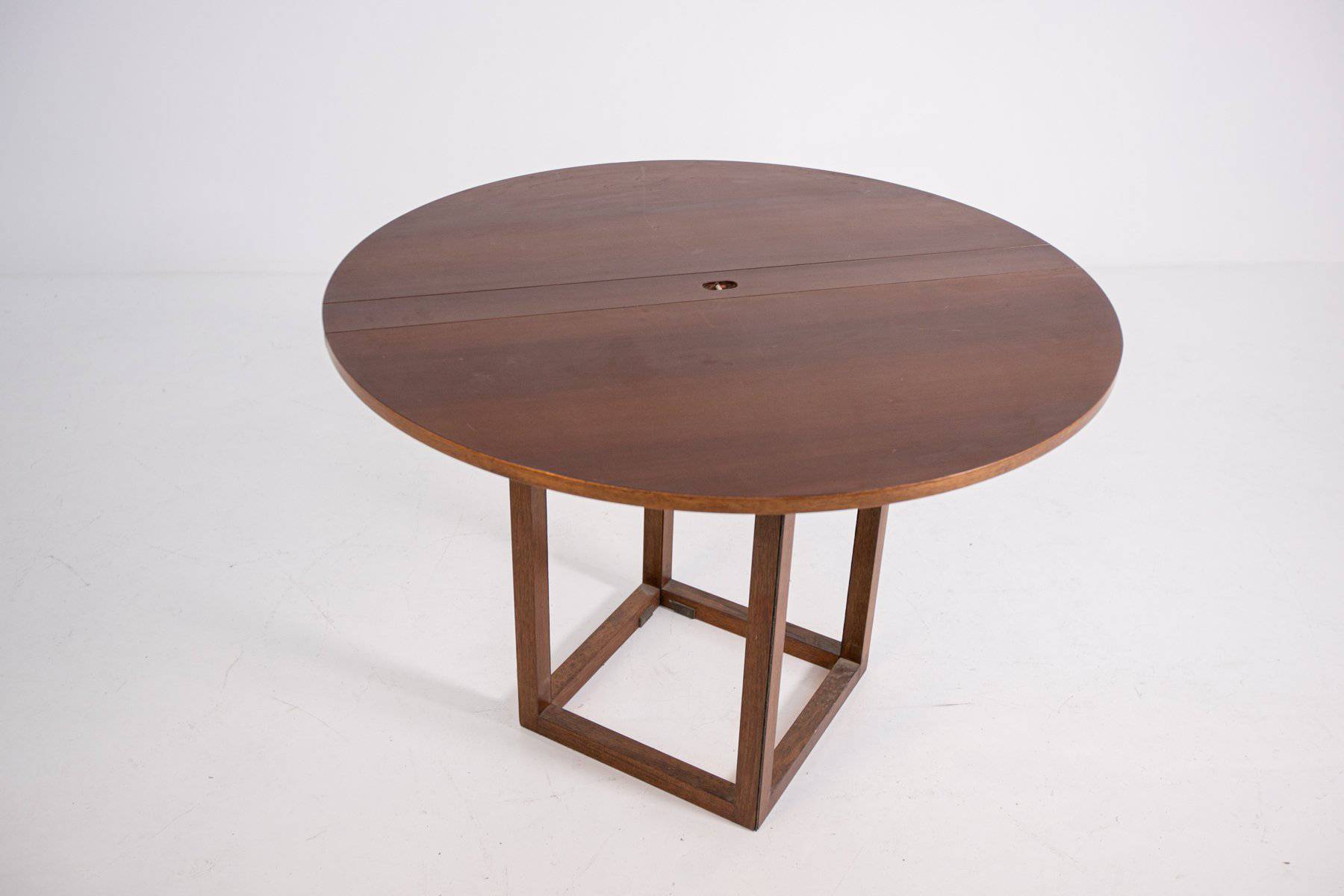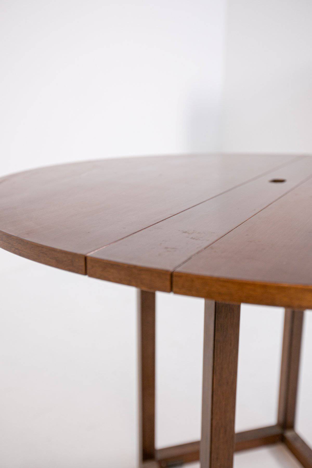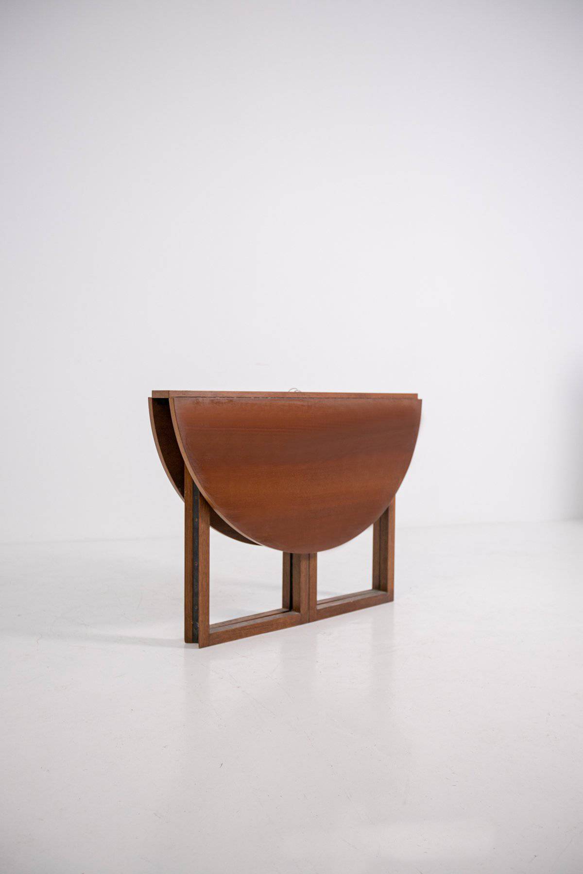 PIERLUIGI GHIANDA (Bovisio Masciago, 1926-2015). Tavolo pieghevole Gabbiano in legno di noce. Anni '70. Edizione limitata. Mis. aperto Alt. cm. 70 Diam. cm. 90 ca. Mis. chiuso Lung. cm. 90 Alt. cm. 70 Prof. cm. 14 ca.