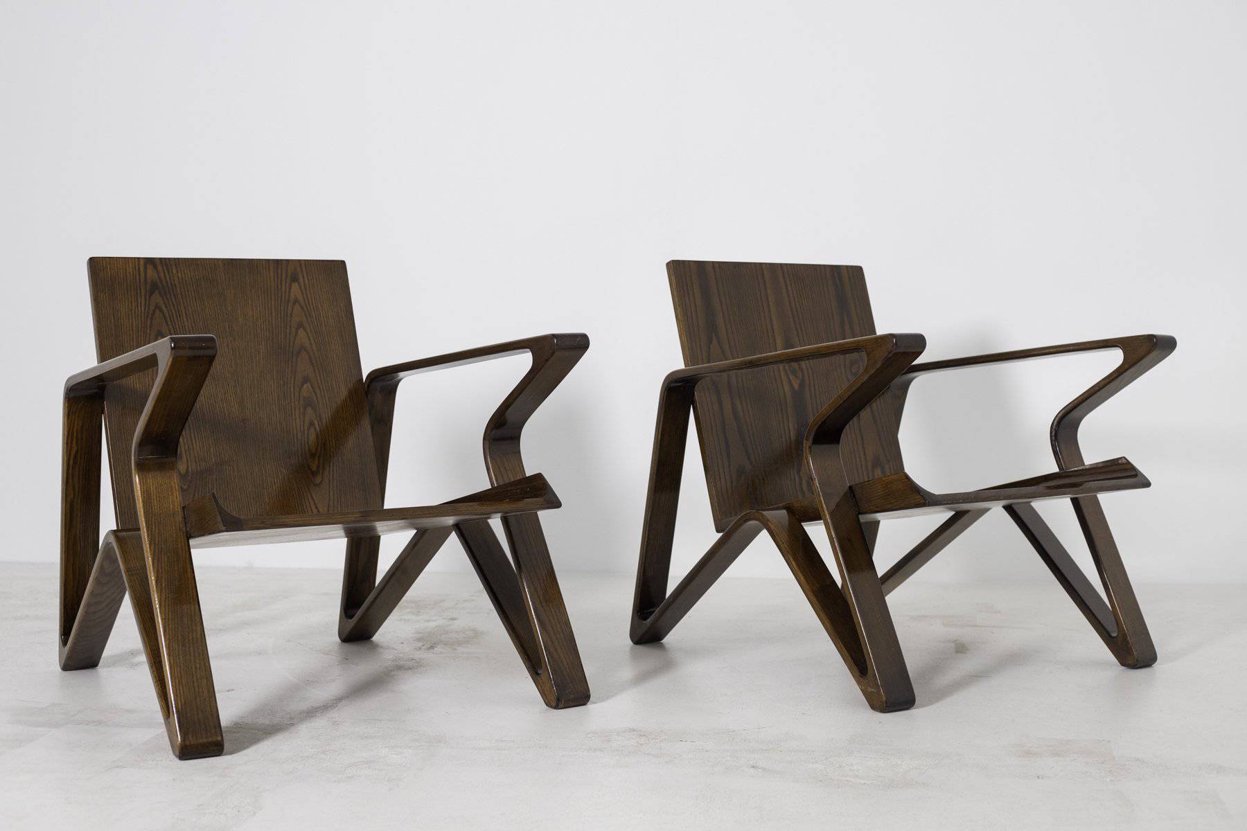 Lotto 148 | Italian pair of armchairs in walnut and cotton