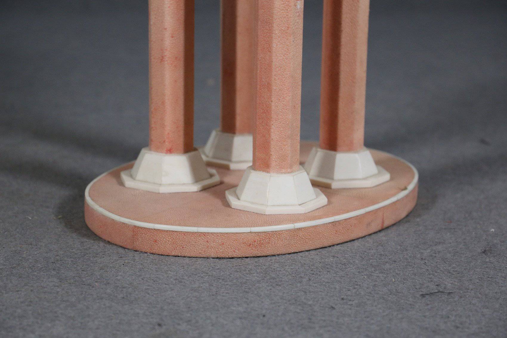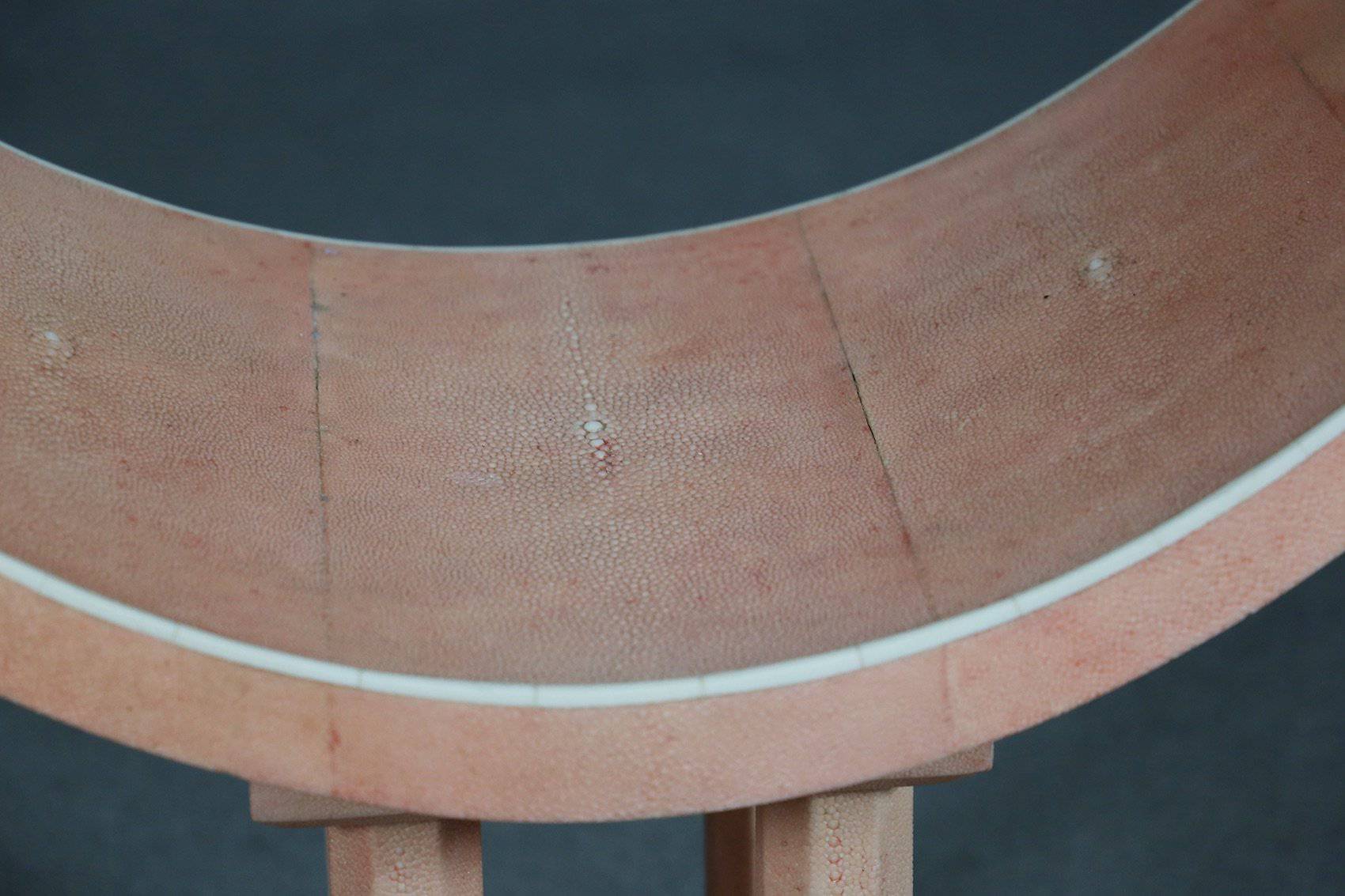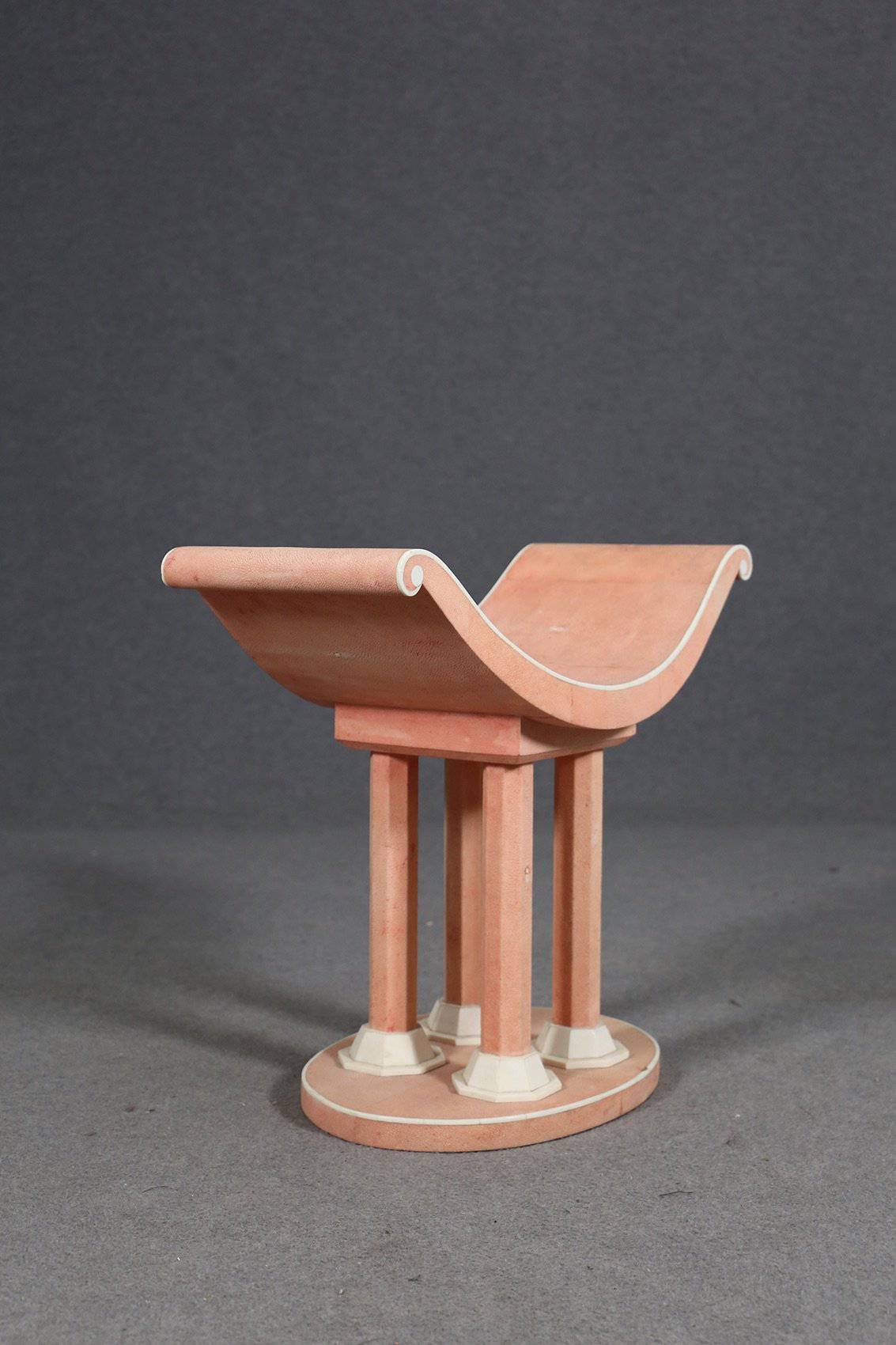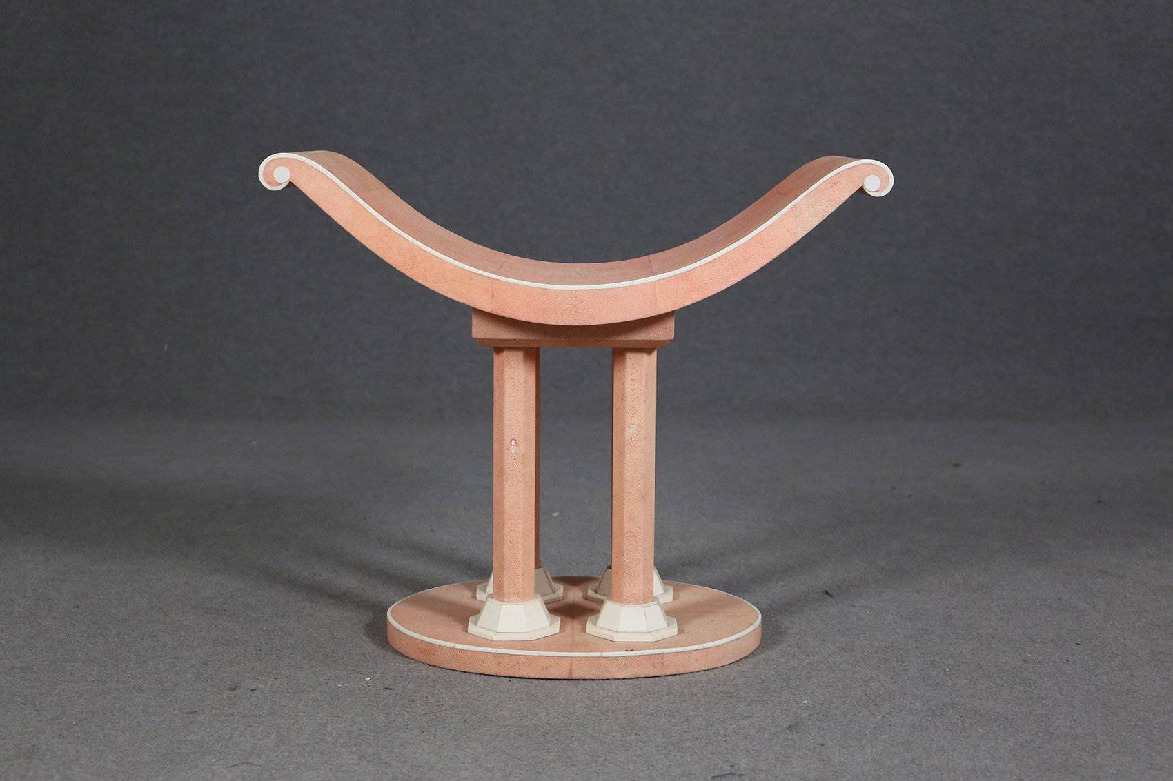 JULES LELEU (Boulogne-Sur-Mer, 1883 - Parigi, 1985). Coppia di sgabelli in stile greco neoclassico in Galuchat rosa. 1930-'40. Pubblicato in Ornella Selvafolta, Il mobile del Novecento. Art Déco, Istituto Geografico De Agostini, Novara, 1985. E in Leleu di Francoise Siriex, pag. 131. Mis. Lung. cm. 64 Alt. cm. 55 Prof. cm. 26 ca.