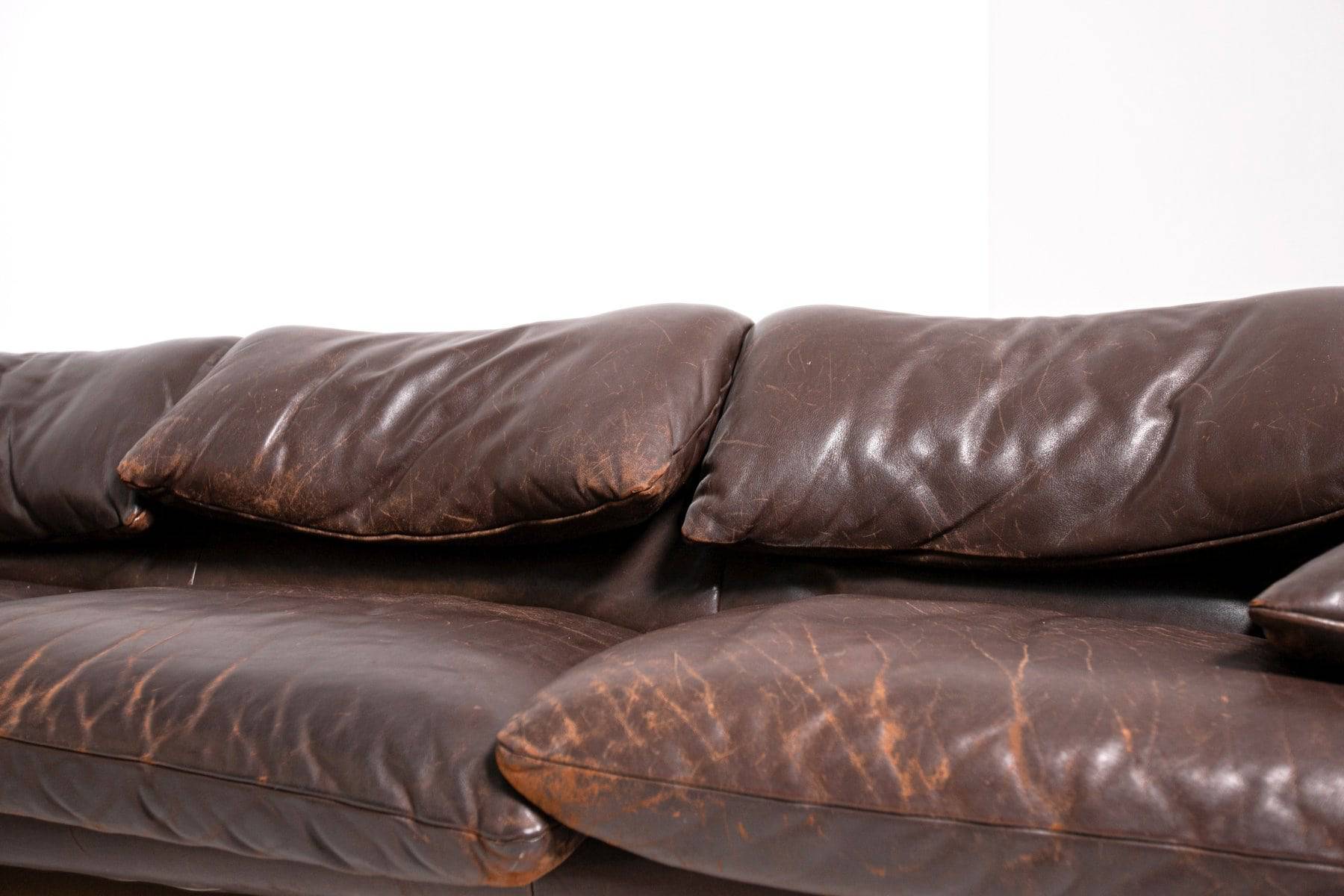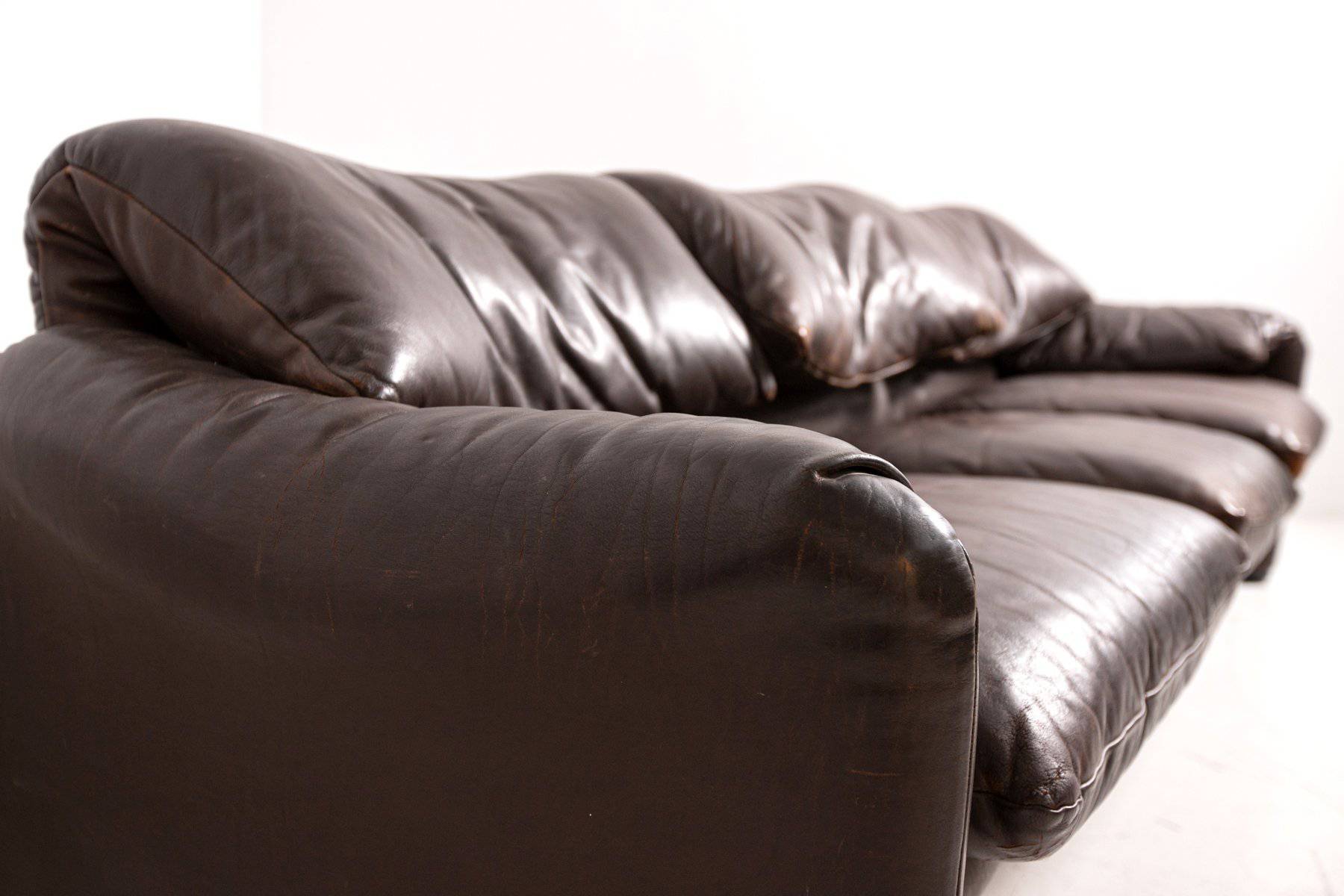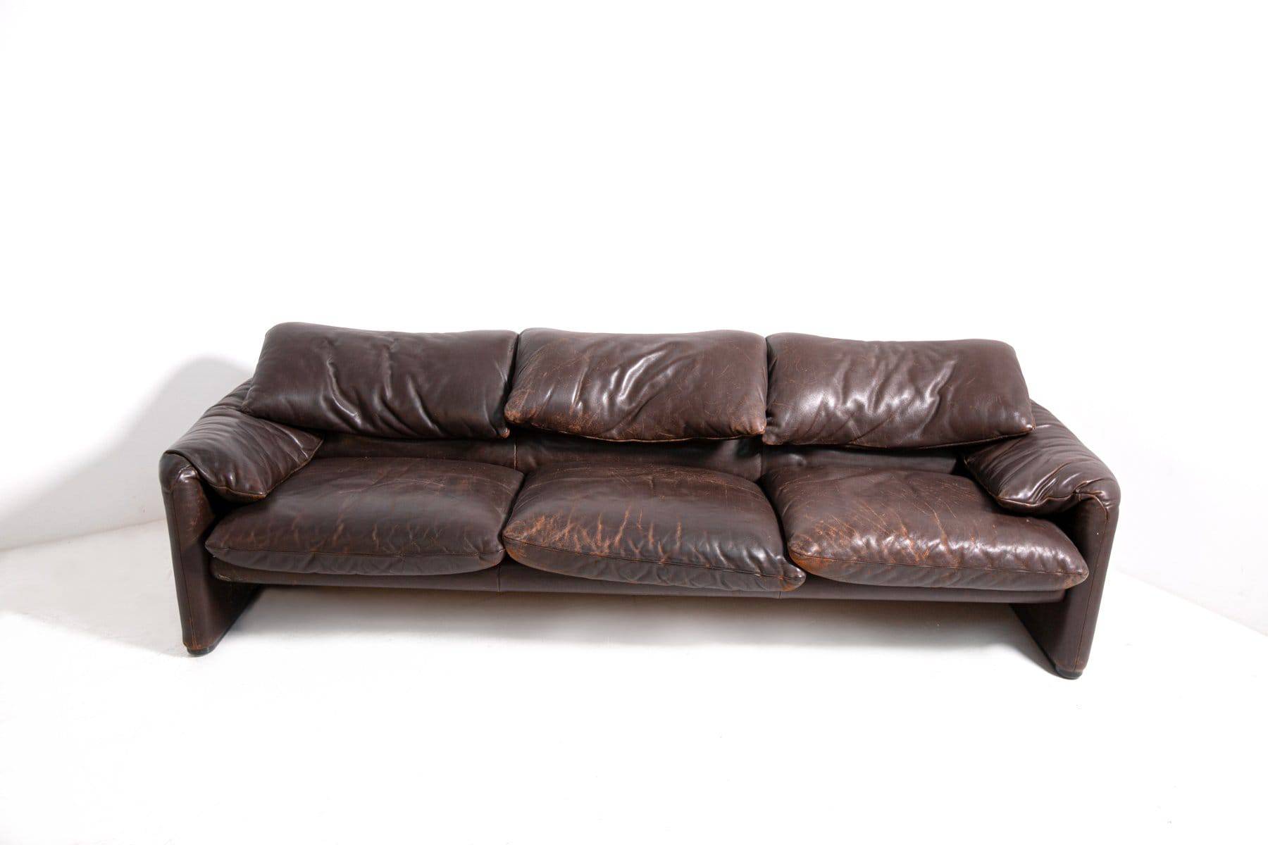 VICO MAGISTRETTI (Milano, 1920-2006) per CASSINA. Divano Maralunga tre posti in pelle. Anni '70. Mis. Lung. cm. 240 Alt. cm. 72 Prof. cm. 95 ca.