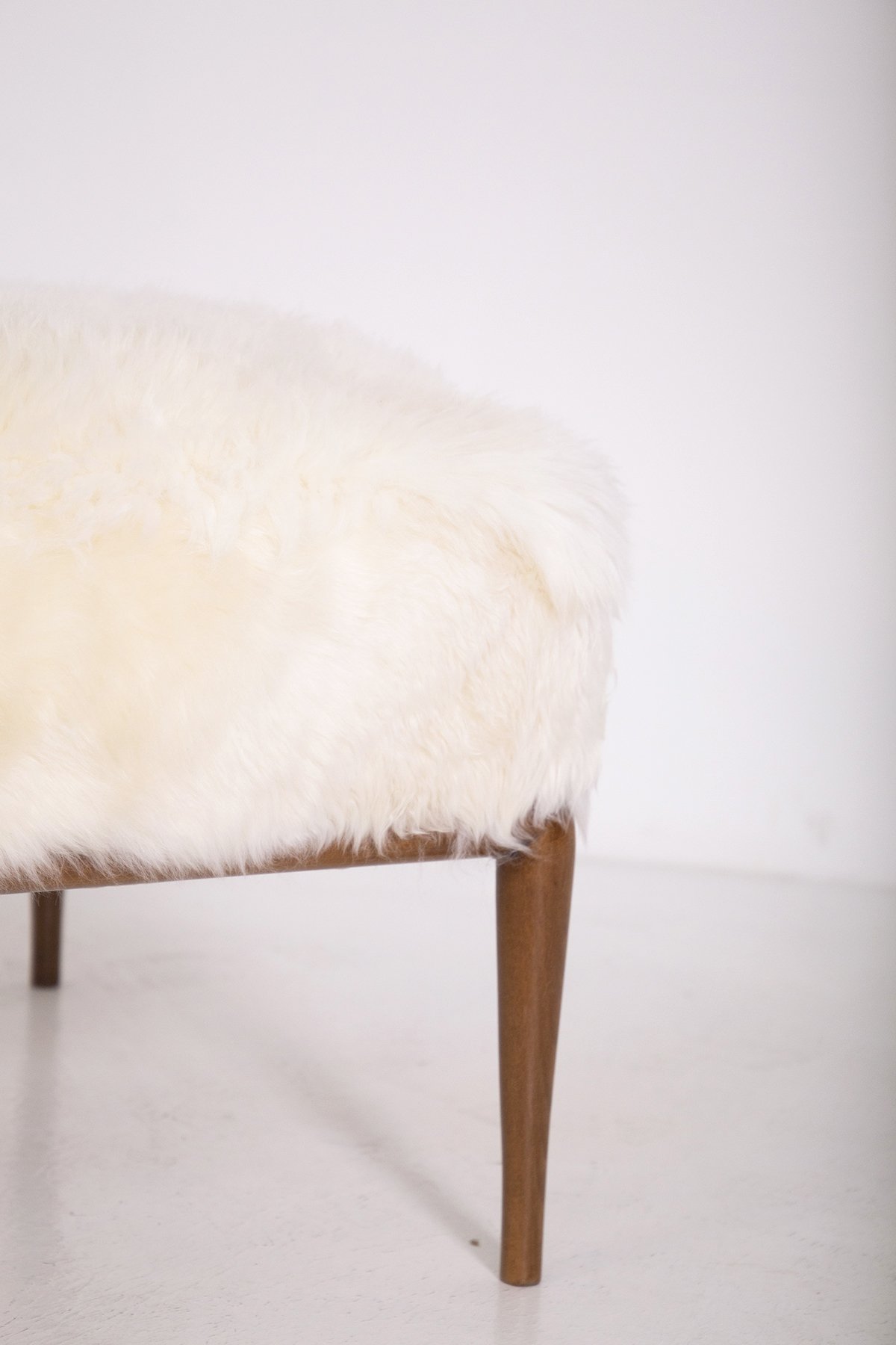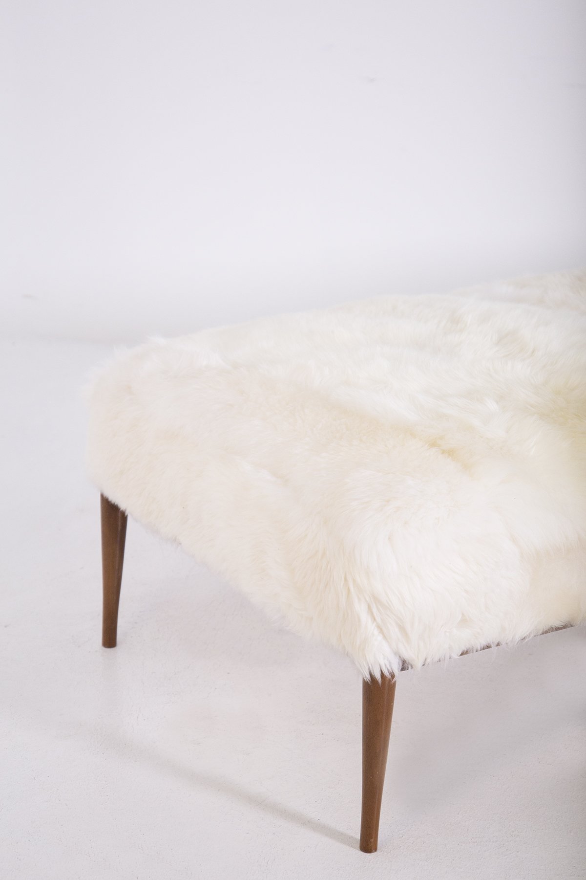 TERENCE HAROLD ROBJOHNS GIBBINS (Widnes, 1903 - Atene, 1976). Daybed in legno di noce rivestito in tessuto di capra. Anni '50. Mis. Lung. cm. 185 Alt. cm. 50 Prof. cm. 90 ca.