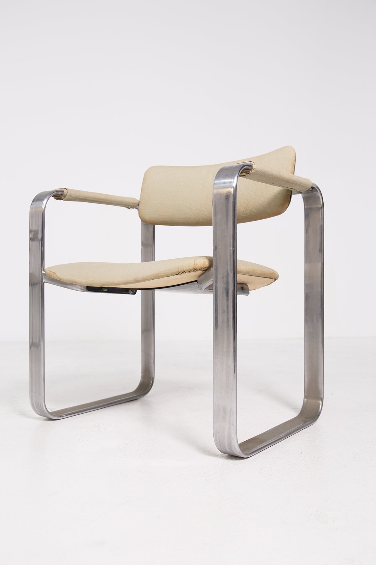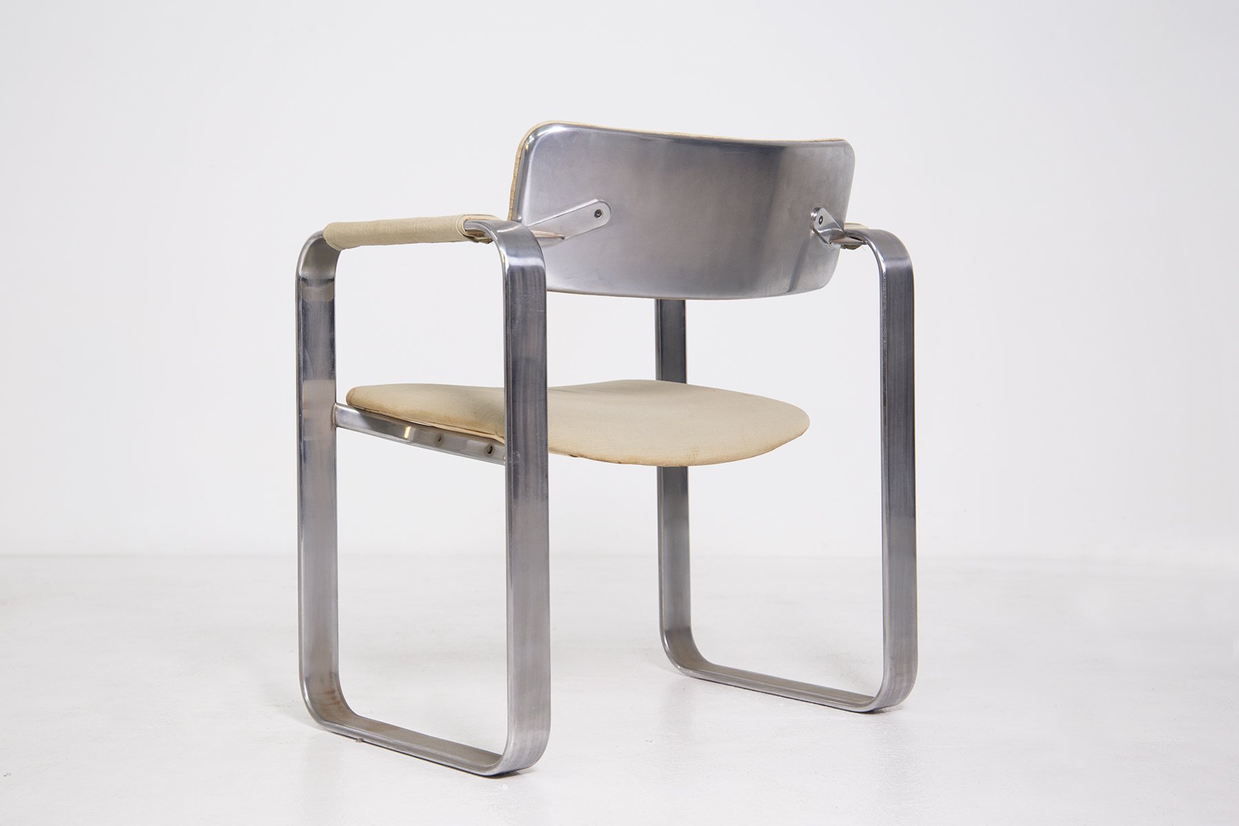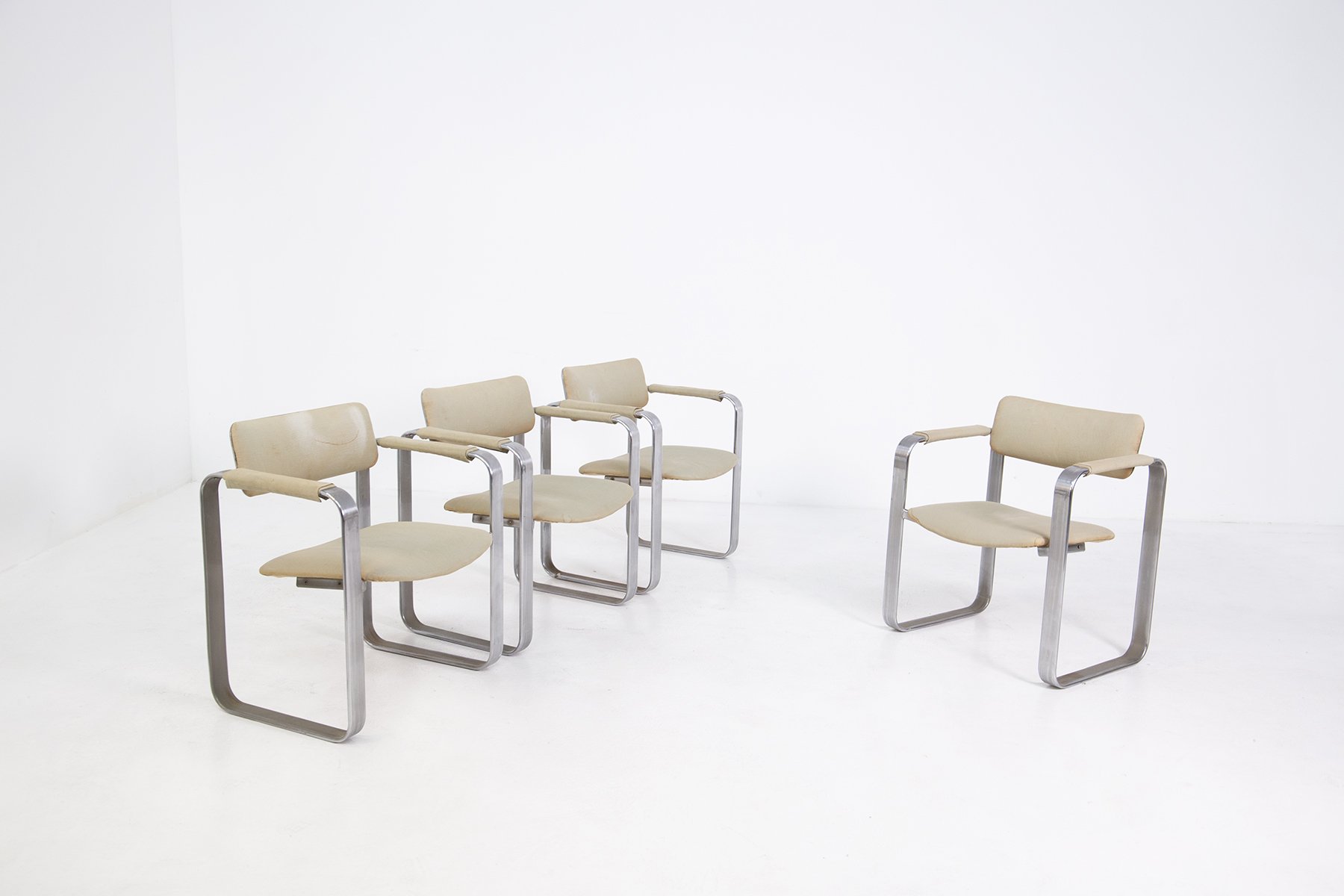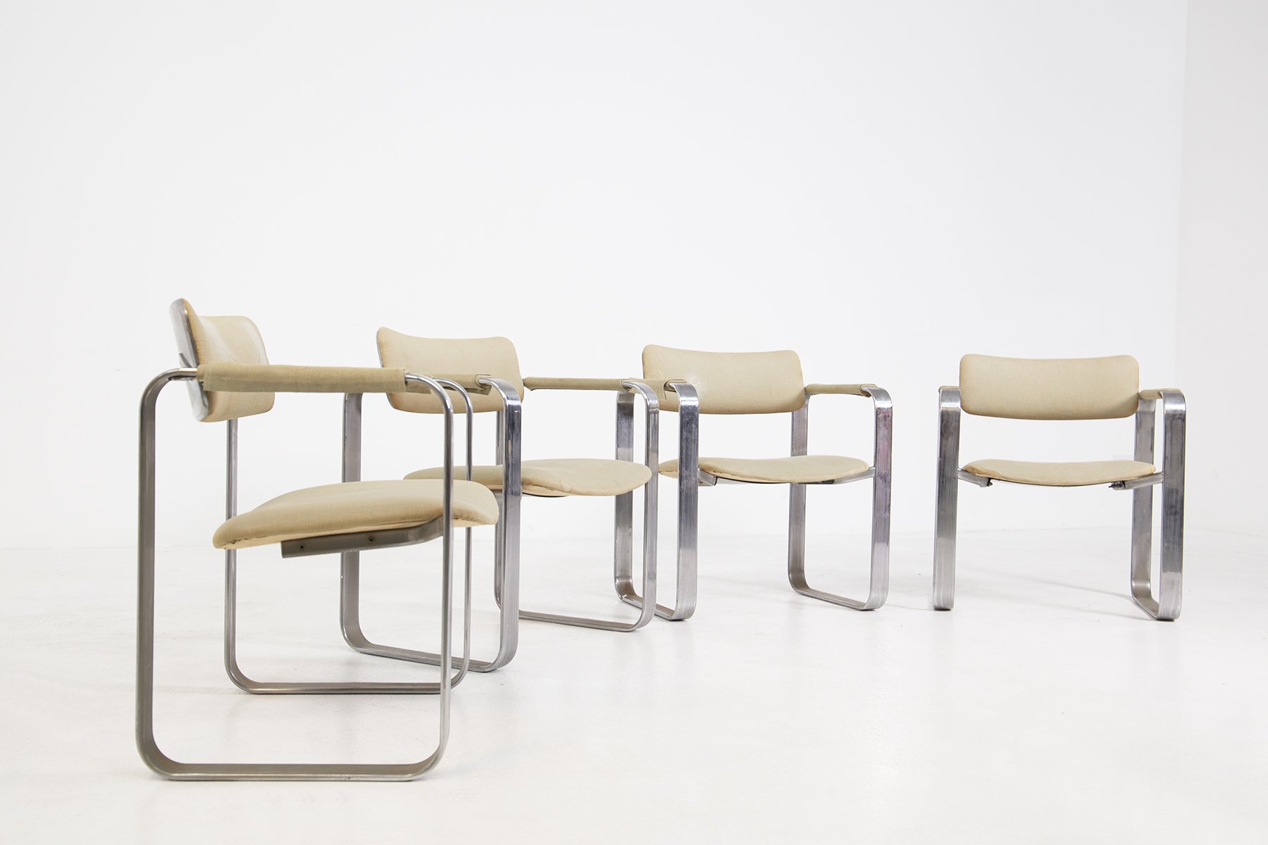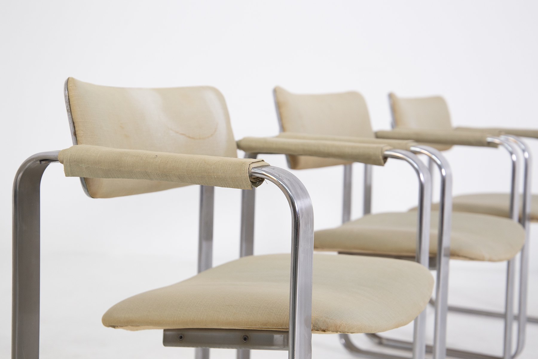 GIUSEPPE PAGANO POGATSCHNIG (Attr.) (Parenzo, 1896 - Austria, 1945). Quattro sedie con struttura in acciaio e seduta in tessuto. Anni '40 Mis. Lung. cm. 64 Alt. cm. 74 Prof. cm. 55 ca.
