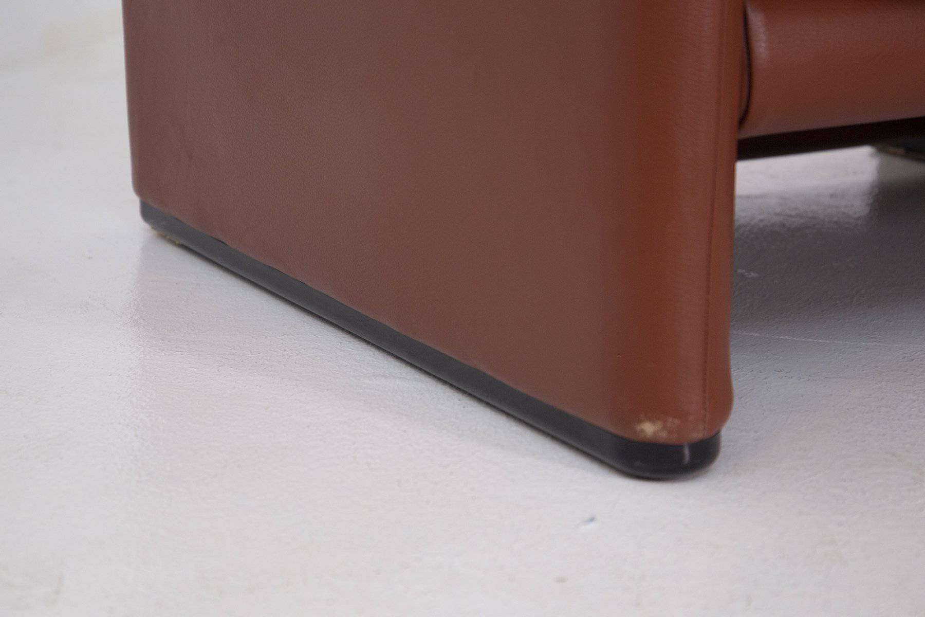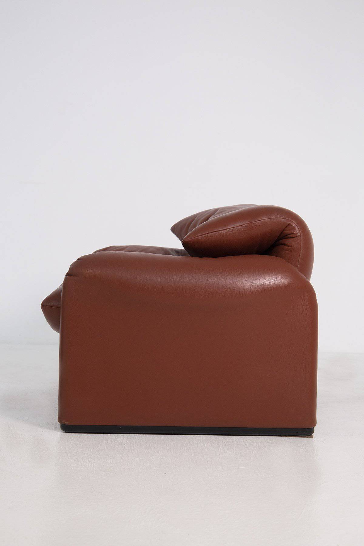 VICO MAGISTRETTI (Milano, 1920 - 2006) per CASSINA. Coppia di poltrone Maralunga in pelle marrone. Schienale regolabile. 1973. Mis. Lung. cm. 100 Alt. cm. 70 Prof. cm. 85 ca.