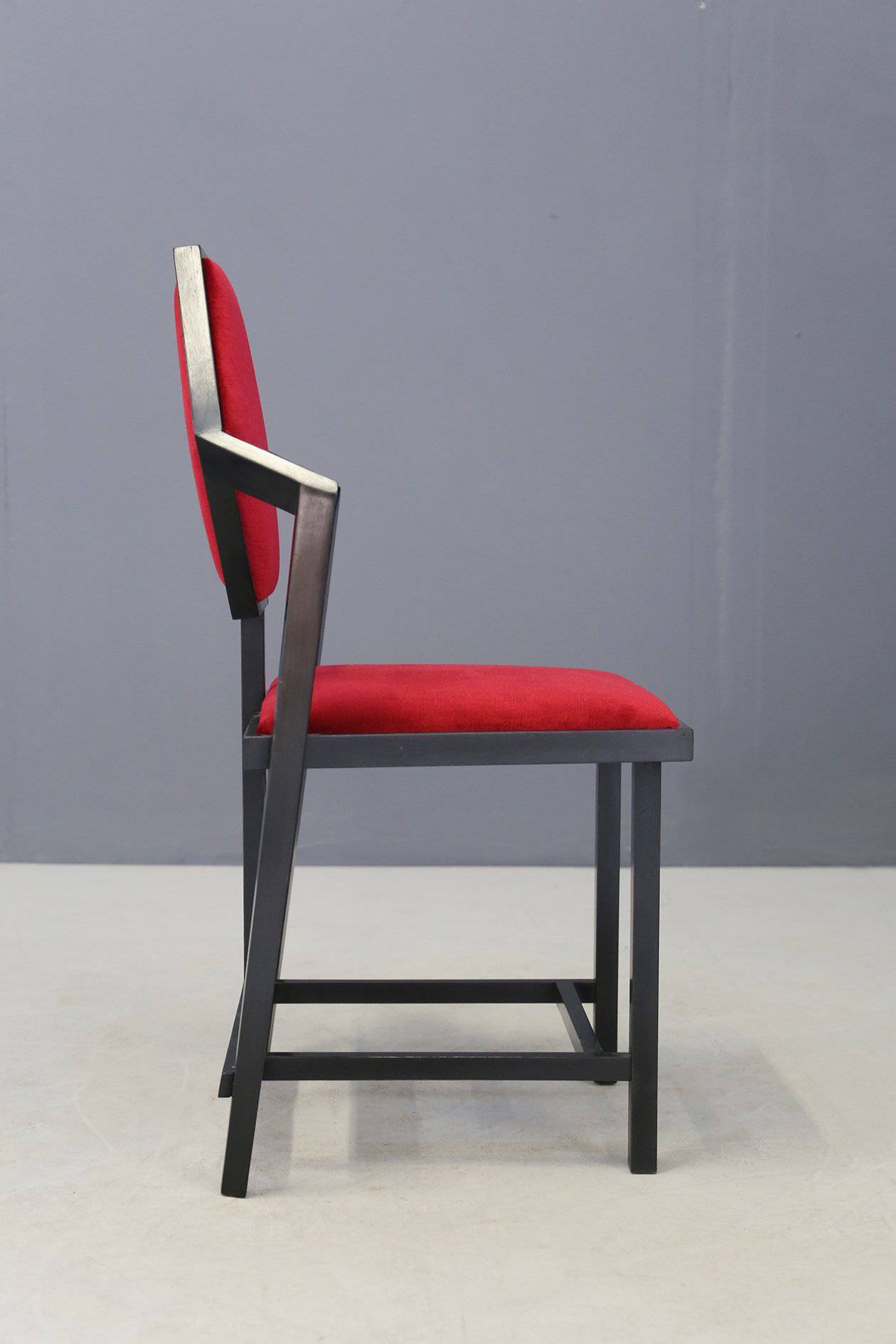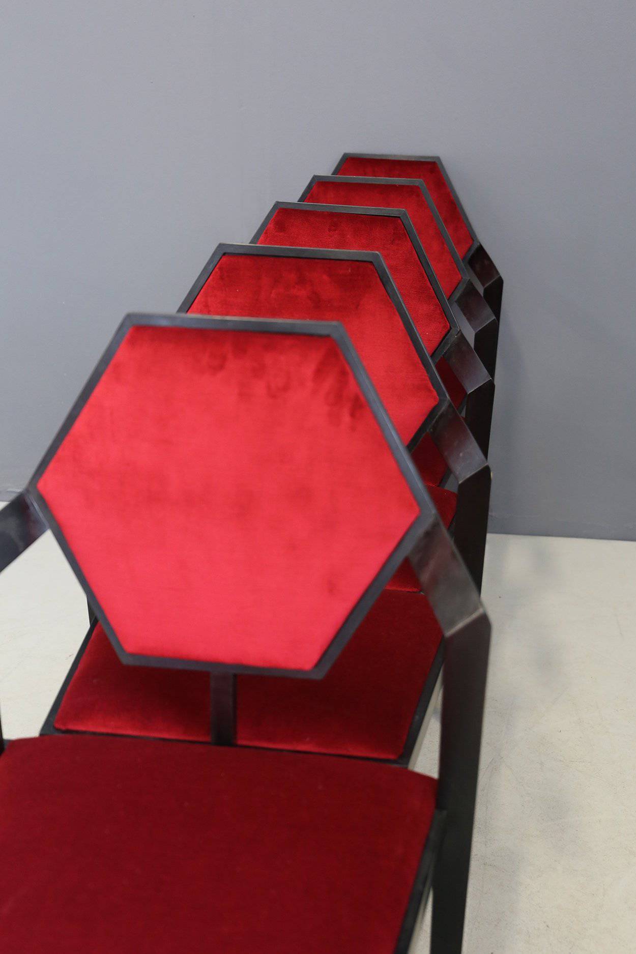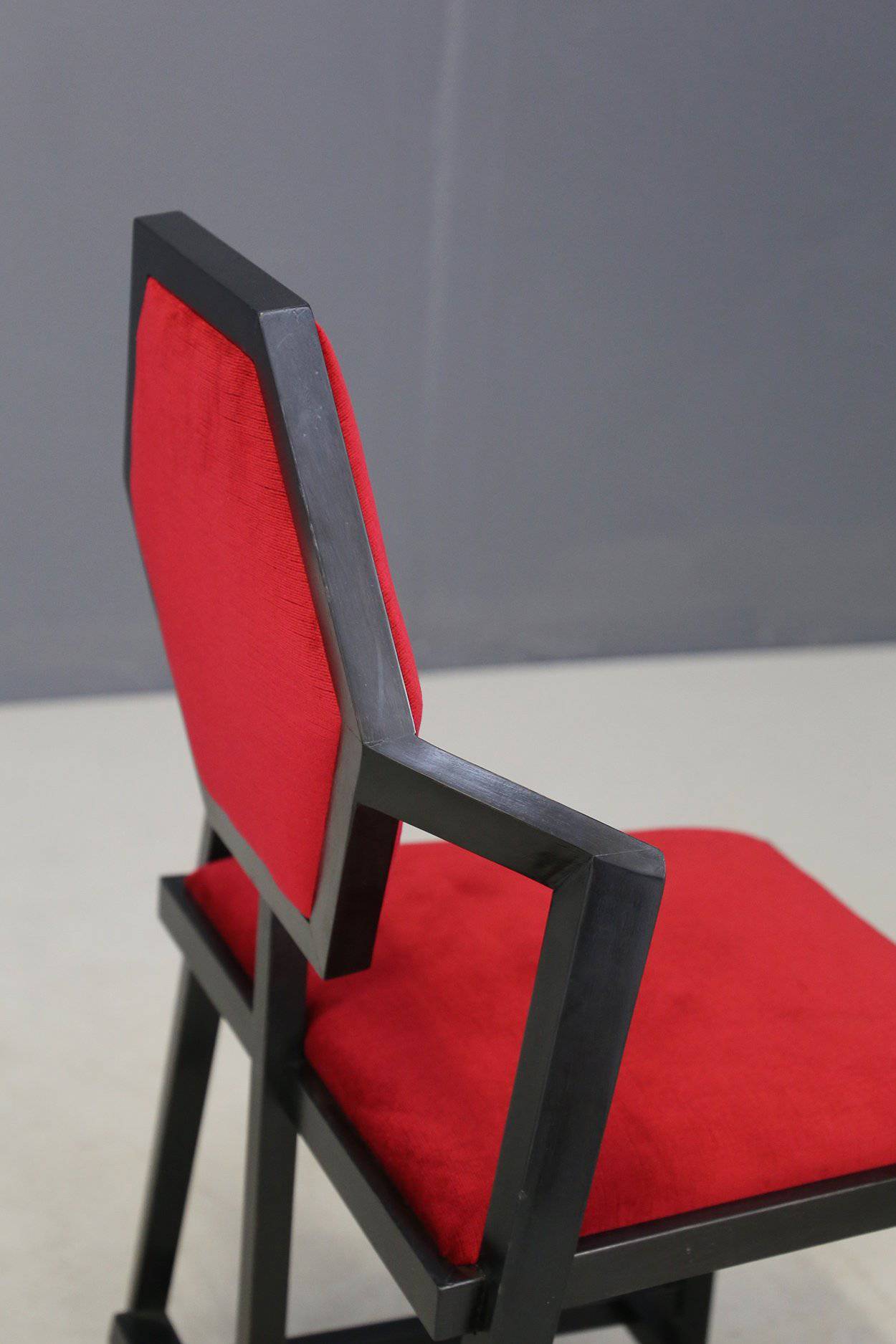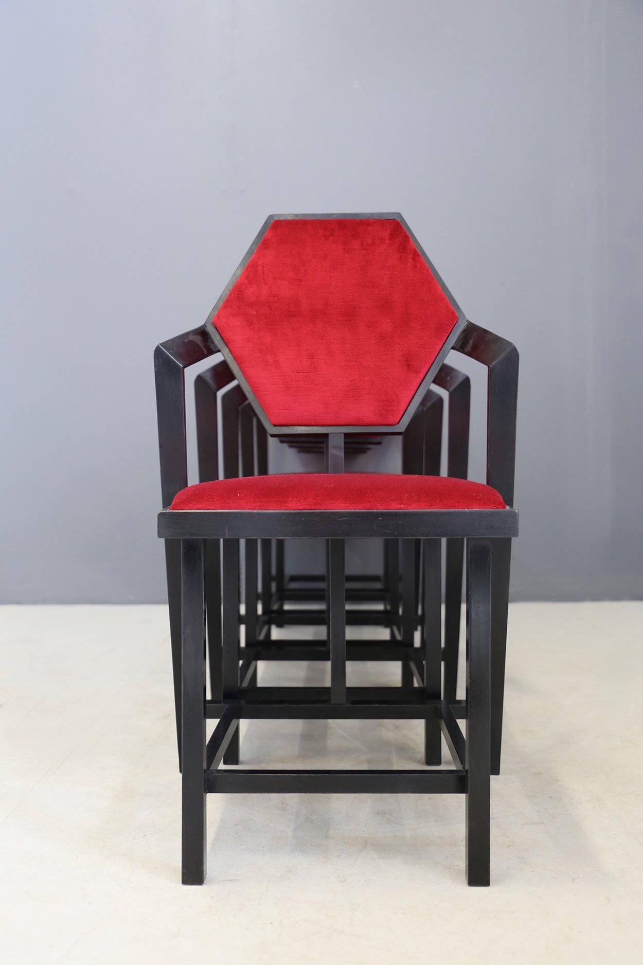 FRANK LLOYD WRIGHT (su disegno di) (Richland Center, 1867 - Phoenix, 1959). Sei sedie Midway 1 in legno. Manifattura italiana. Anni '80. Mis. Lung. cm. 80 Alt. cm. 120 Prof. cm. 40 ca.