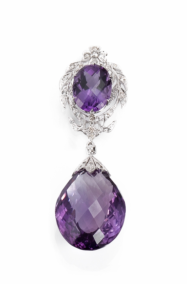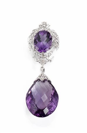 Pendente in oro bianco, ametiste e diamantirealizzato con un'ametista ovale...