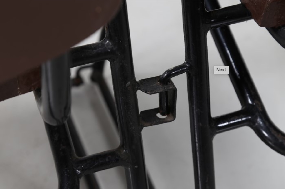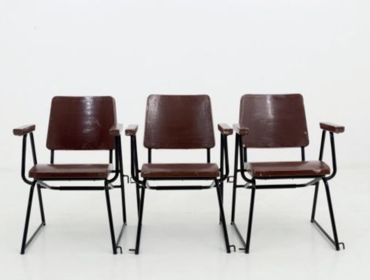 BBPR (Attr.). Dodici sedie provenienti dal teatro Michelin Sport Club di Torino in ferro verniciato e legno. Anni '30. Mis. Lung. cm. 62 Alt. cm. 78 Prof. cm. 57 ca.