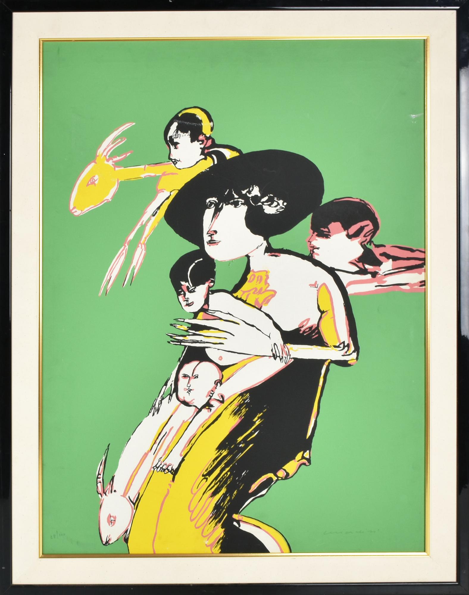 Remo Brindisi PASTORALE serigrafia su tela, cm 70x50; es. 28/100 firma sul...