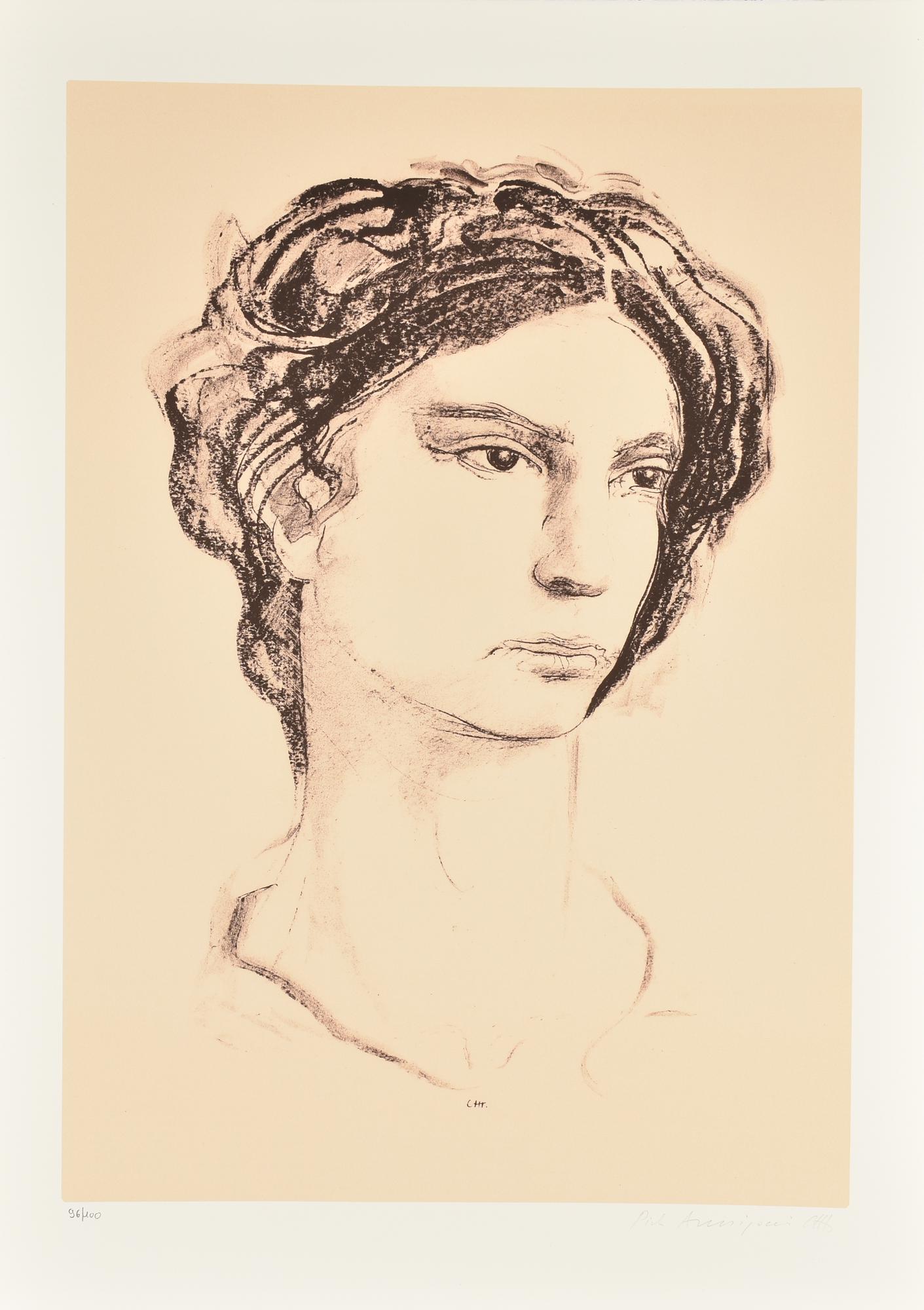 Pietro Annigoni RITRATTO litografia su carta, cm 70x50; es. 96/100 firma e...