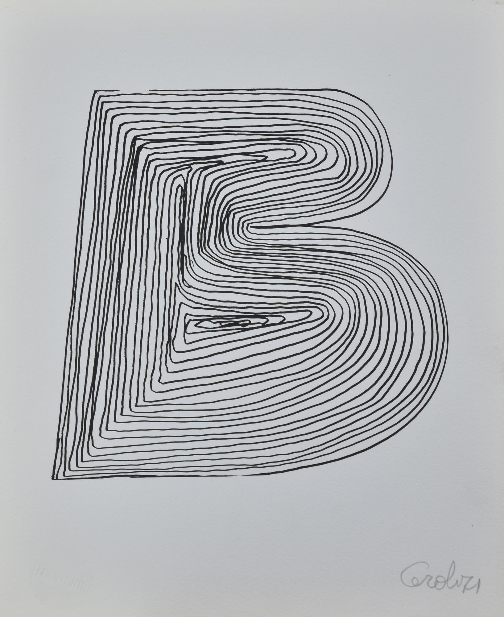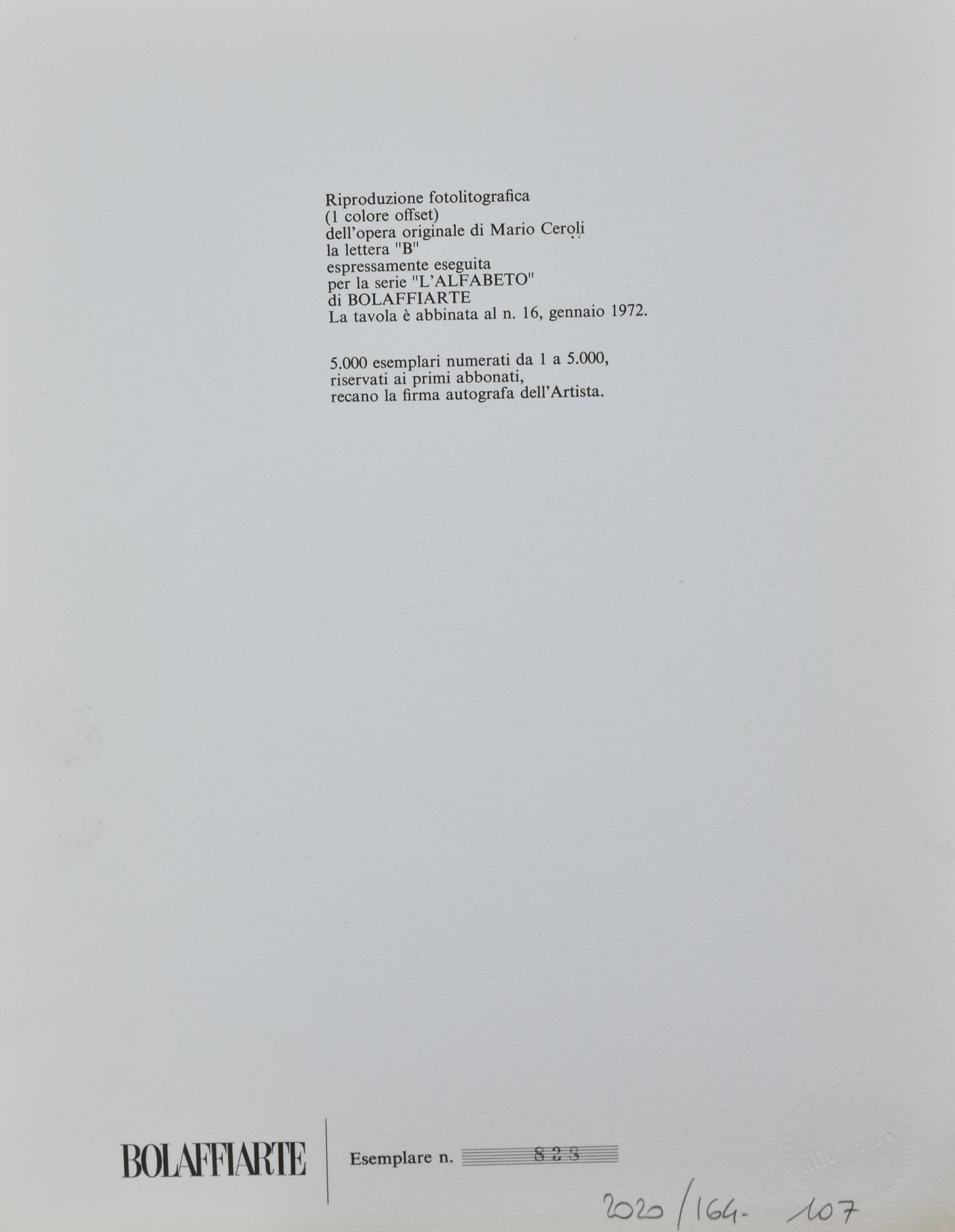 Mario Ceroli LETTERA B riproduzione fotolitografica su cartoncino, cm...