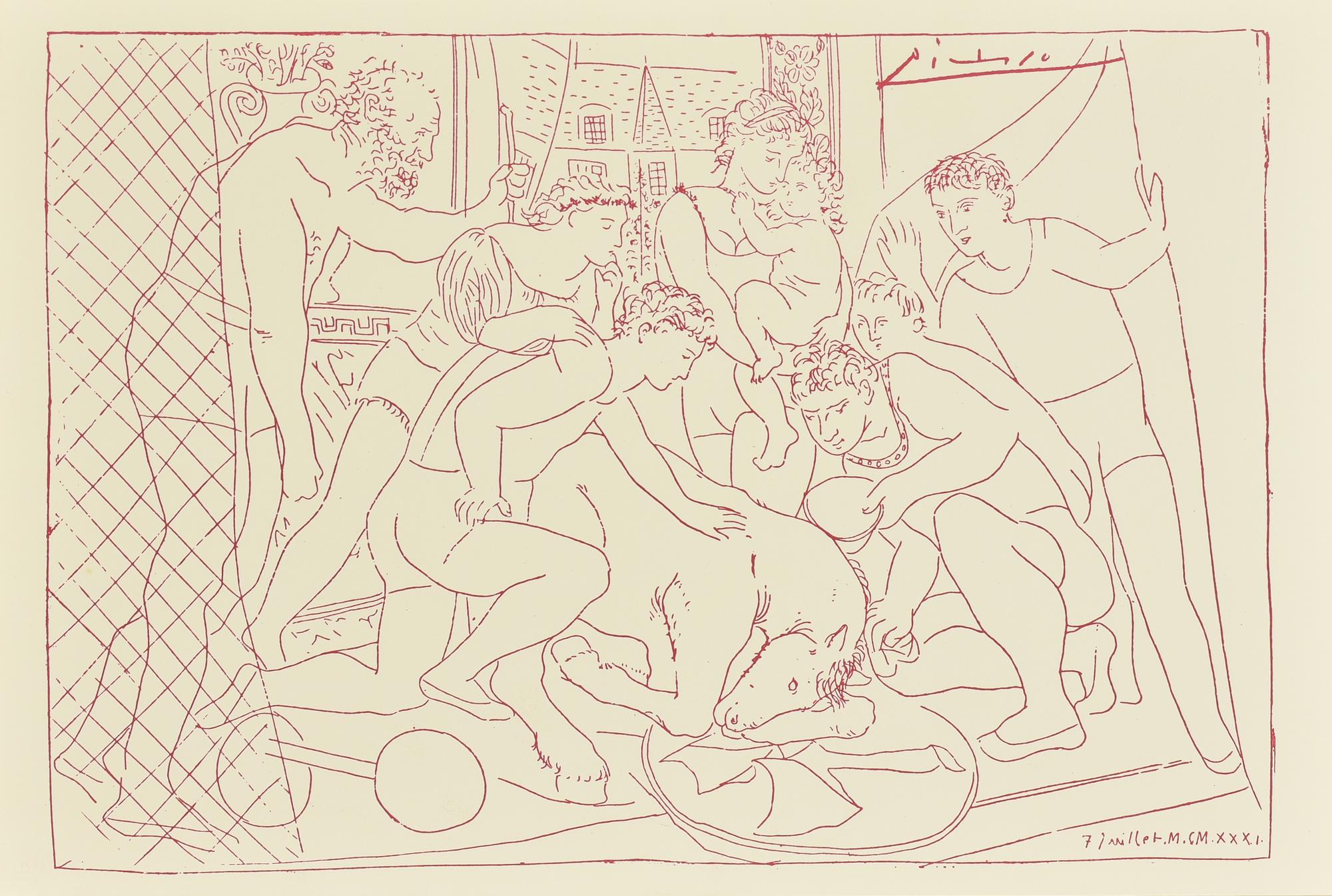 Pablo Picasso CAVALLO CHE MUORE litografia su carta (d'apres), cm 33,4x47,4...