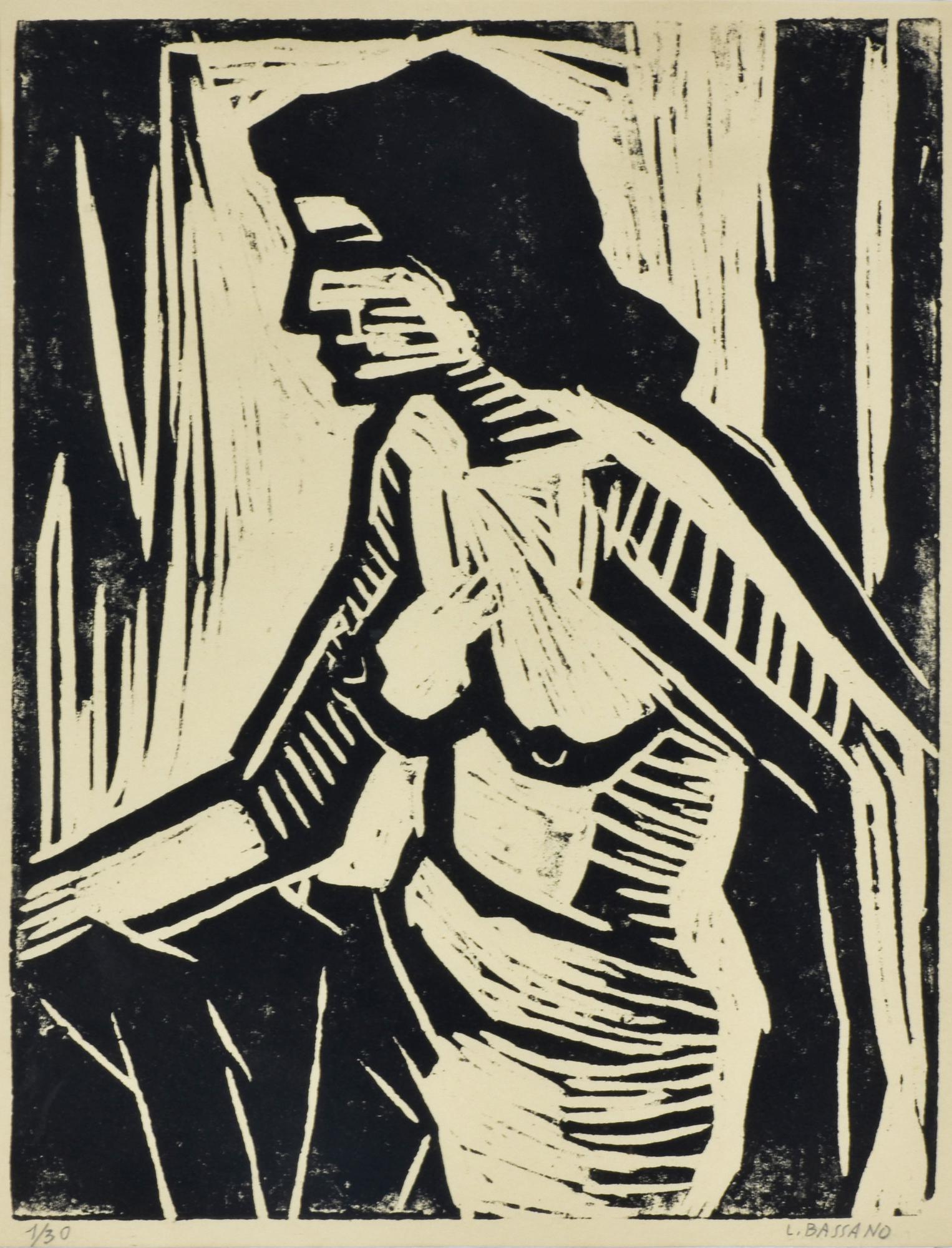 Luigi Bassano NUDO xilografia su carta, cm 34x26 esemplare 1 su 30 firma