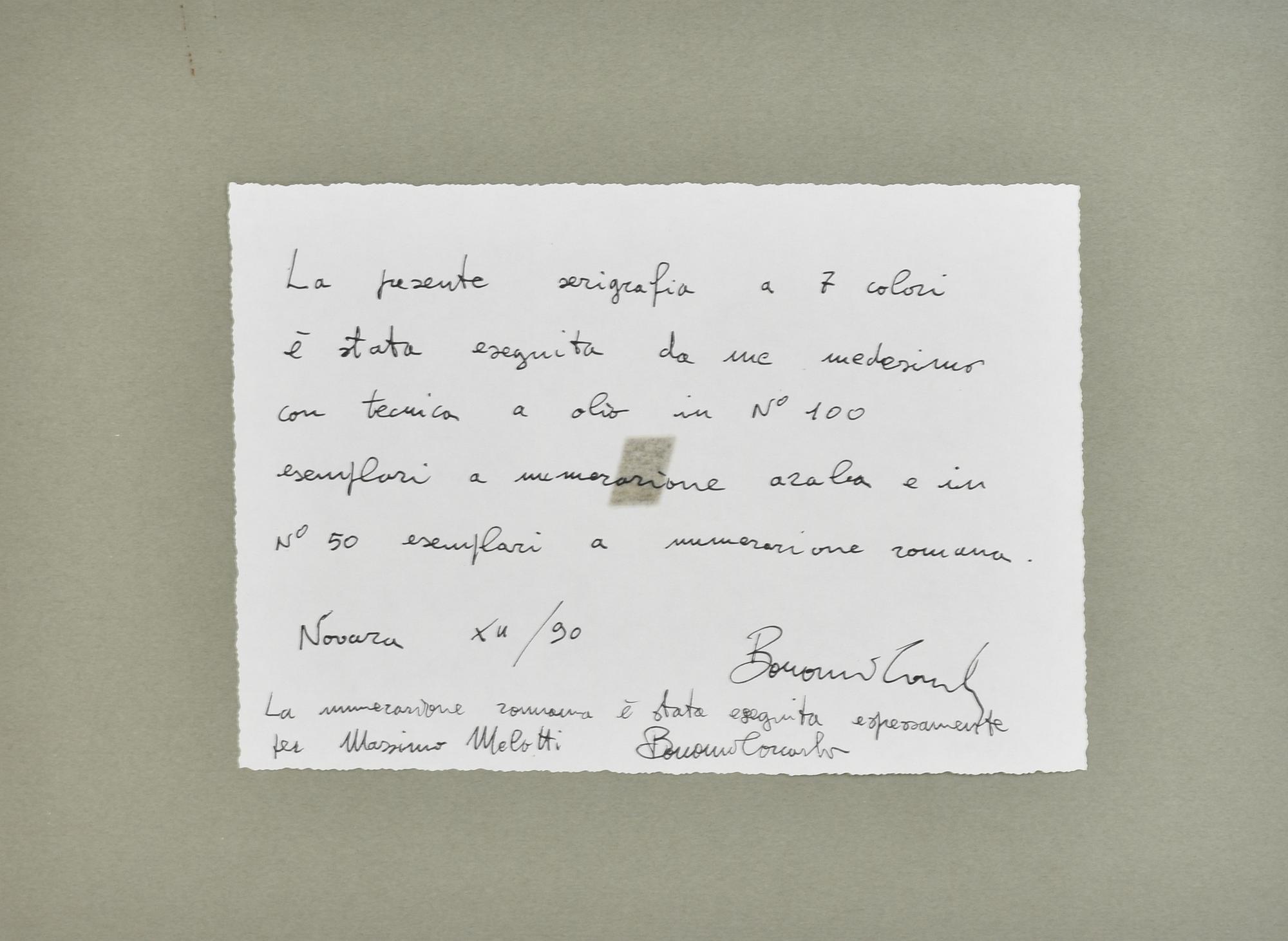 L'opera e' accompagnata da cartoncino con firma dell'artista, descrizione e dedica ad personam