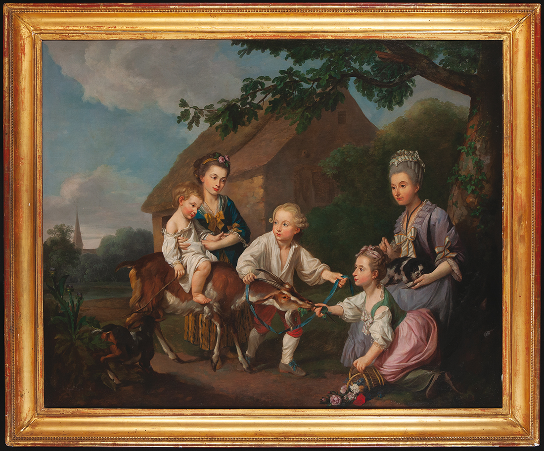 This refined oil on canvas is probably from a French milieu, dating from the end of the eighteenth century. The painter’s name has not survived, but the scene