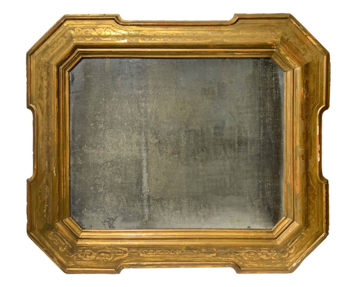 Lotto 29 | Grande ed importante specchiera in legno dorato con decorazione centinata