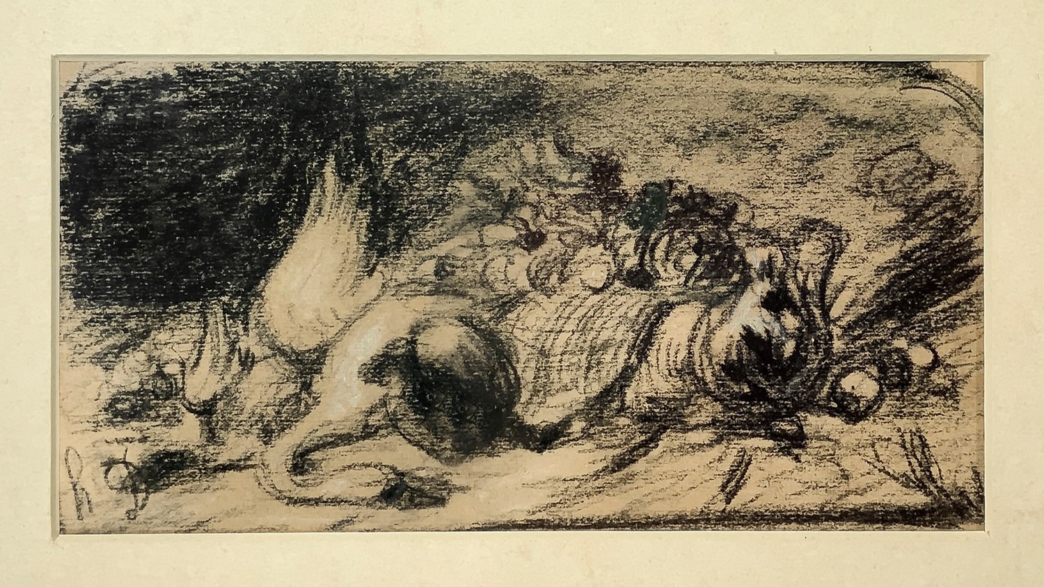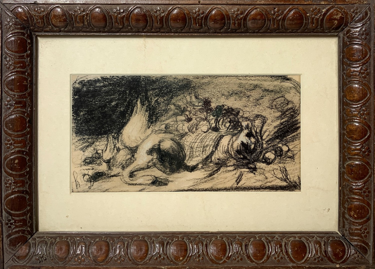 Natura morta. firmato in basso a sinistra HD. Disegno acquarellato tecnica mista su cartoncino (Carboncino biacca) Cm 11x21 Honoré Daumier French 1808-1879