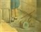 Personaggi con la scatola magica ( chinetoscopio).. Dipinto ad olio su tela 100x73 cm, in cornice 115x86 cm