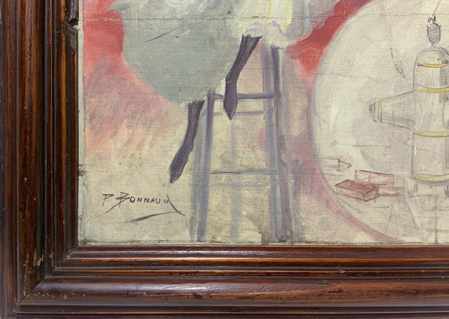 "L’Acétyléne". Tela applicata su tavola 49x39 cm, in cornice 59x49 cm XX secolo Pierre Bonnaud Lione 1865-Lione 1930