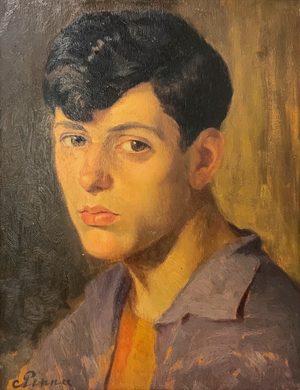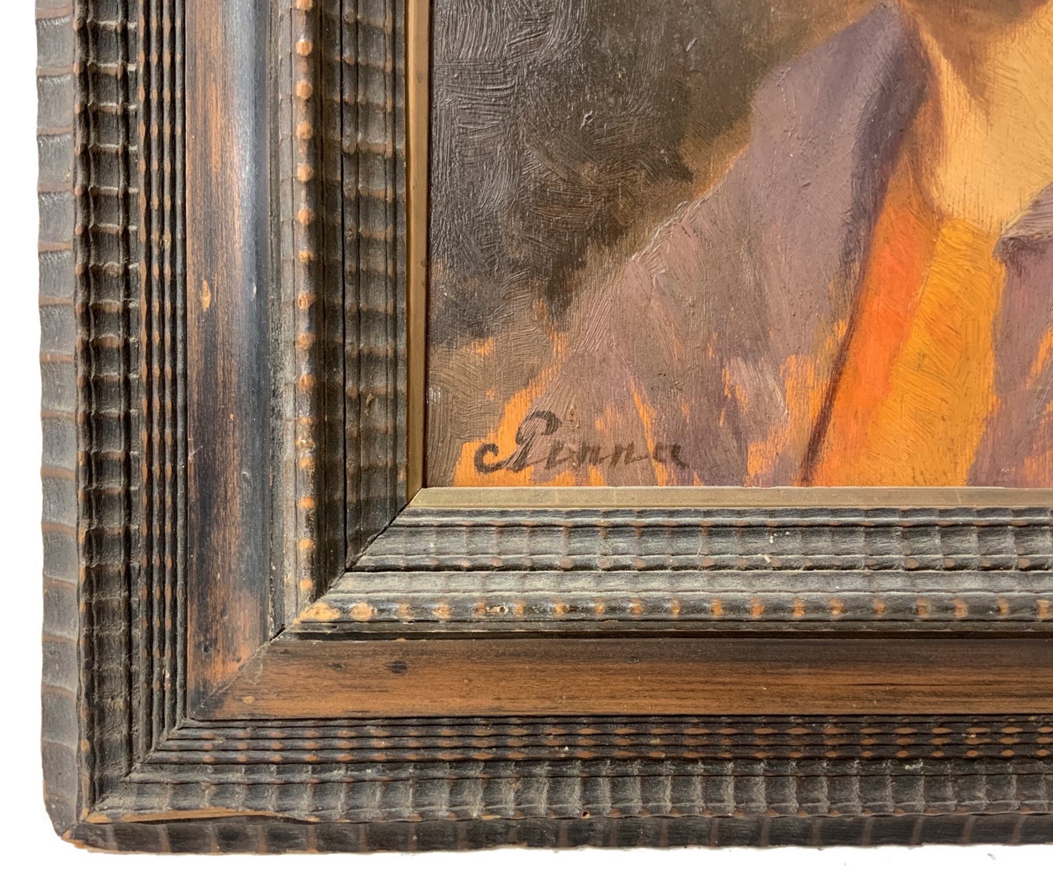 Volto di giovane, firmato C.Penna. Dipinto ad olio su tavoletta 40x32 cm, in cornice di legno 60x52 cm