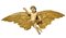 Scultura con angelo policromo in legno laccato e dorato a foglia.. Cm 32x74