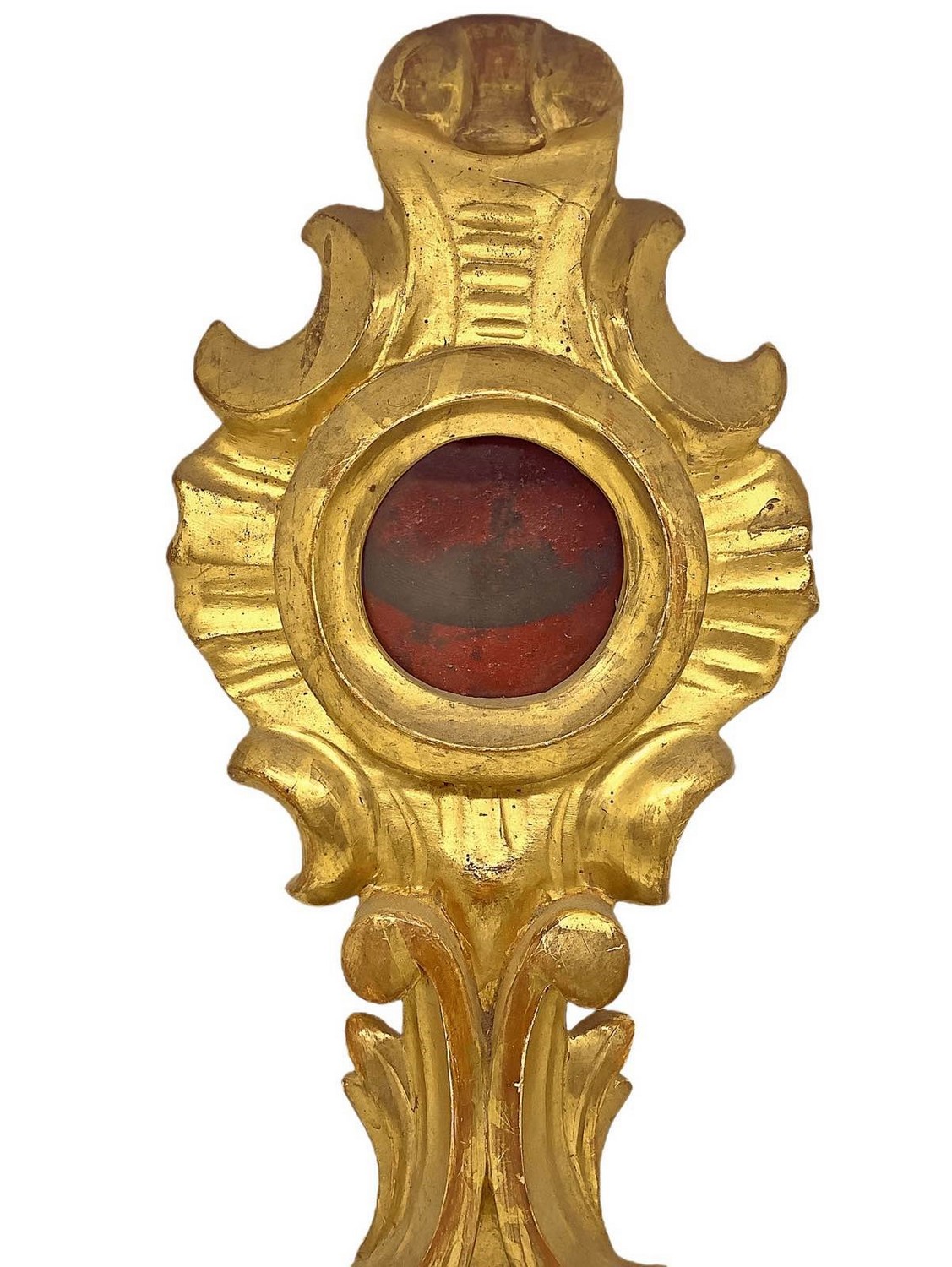 Reliquiario in legno dorato a foglia.. H cm 42 Fine XVIII secolo.