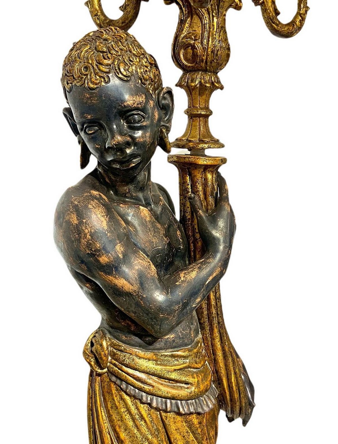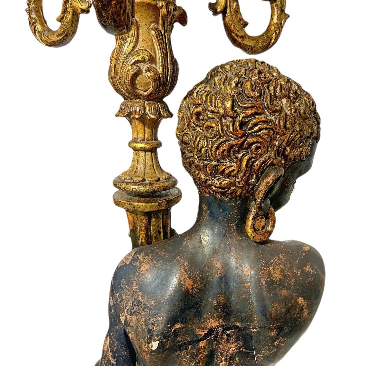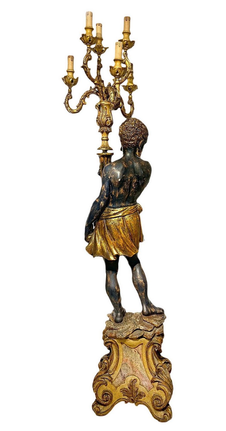 Grande candeliere da terra in legno raffigurante moro. Candeliere a 6 luci.