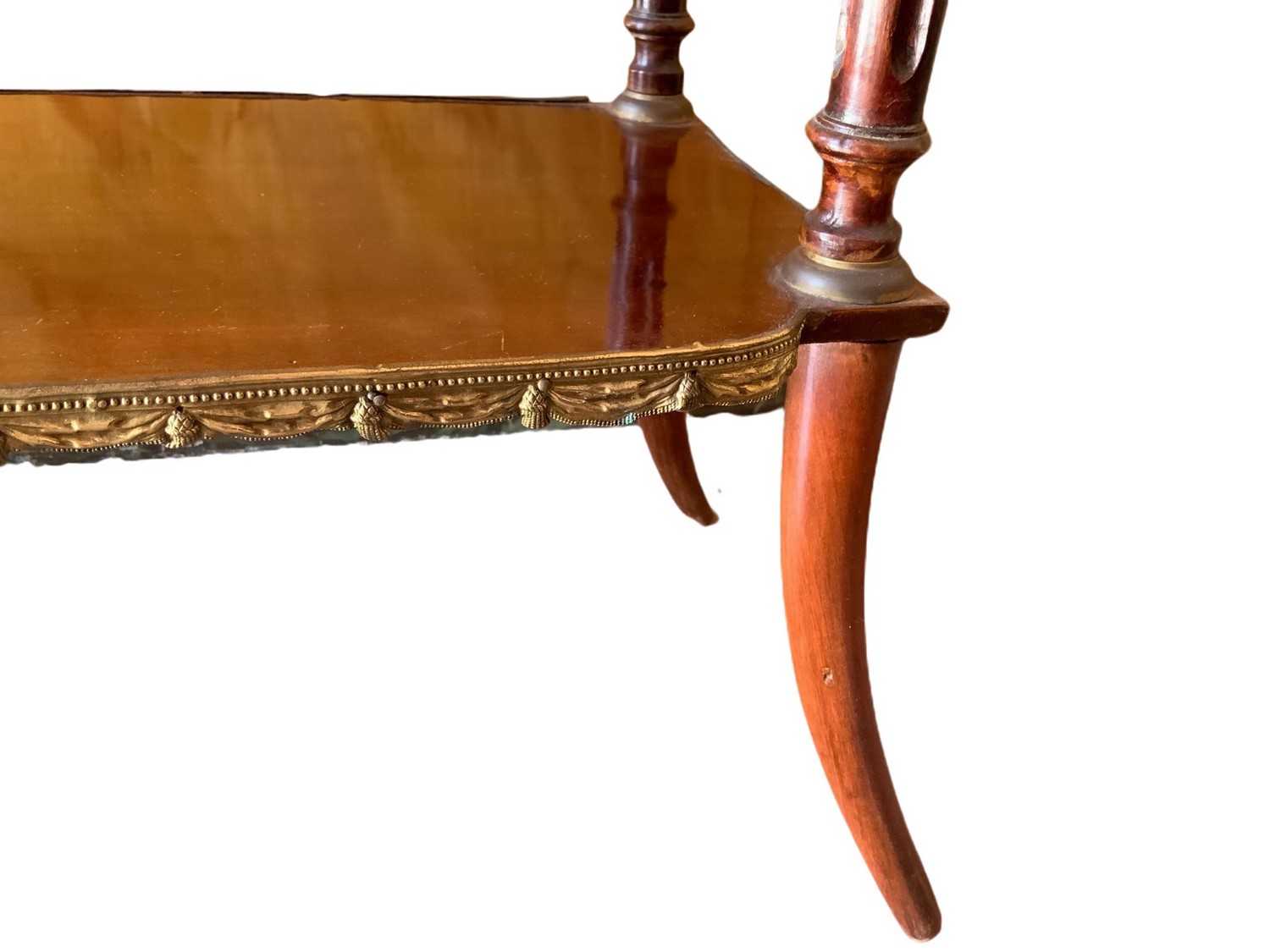 Tavolino con struttura in legno , con ottoni e marmo al piano. . H cm 80x43x30 XX Secolo.