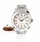 Cassa in tre corpi con fondello e corona a vite, lunetta liscia, vetro zaffiro. Quadrante bianco con anello periferico dei secondi in arancione, indici applicati a bastone con inserto in materiale luminescente arancione, lancette a bastone in acciaio con inserto in materiale luminescente, secondi al centro a saetta arancione. movimento a carica automatica cal.3131. Bracciale a maglie Oyster in acciaio lucido e satinato, chiusura deployante e Fliplock. Diam. mm 40