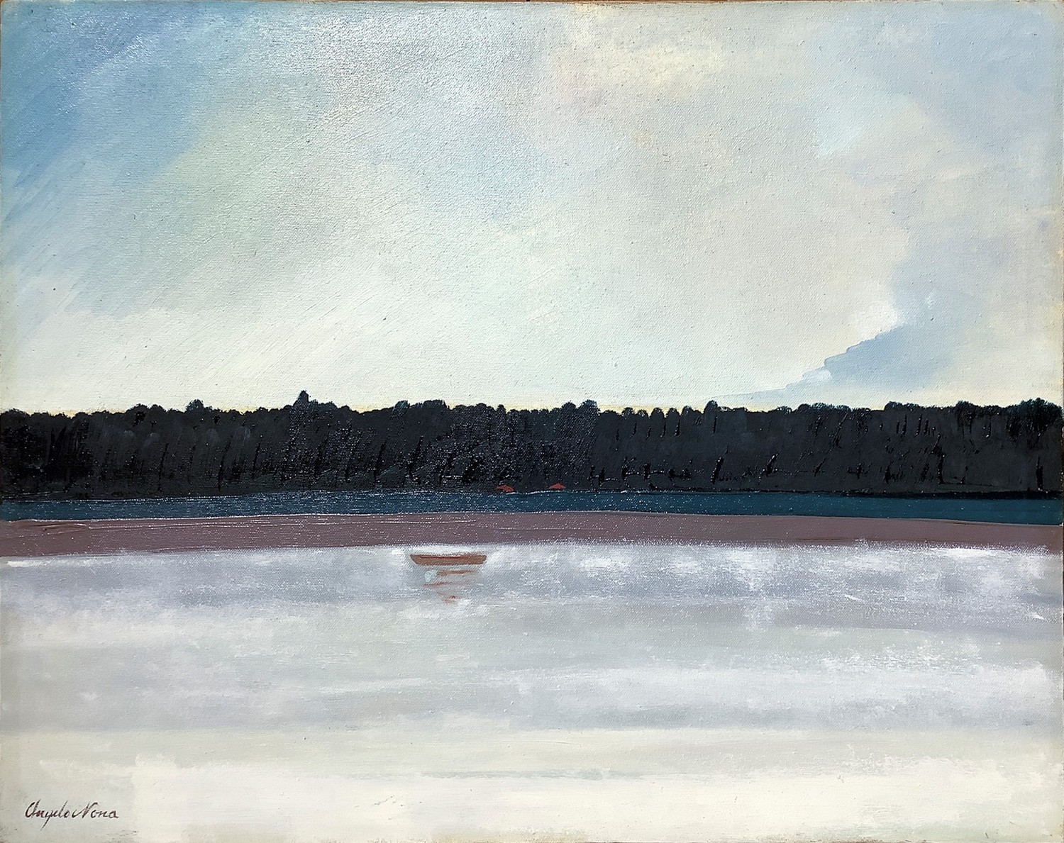 Paesaggio lacustre. Opera sprovvista di cornice Olio su tela Angelo Nona Favara 1937-Catania 1975