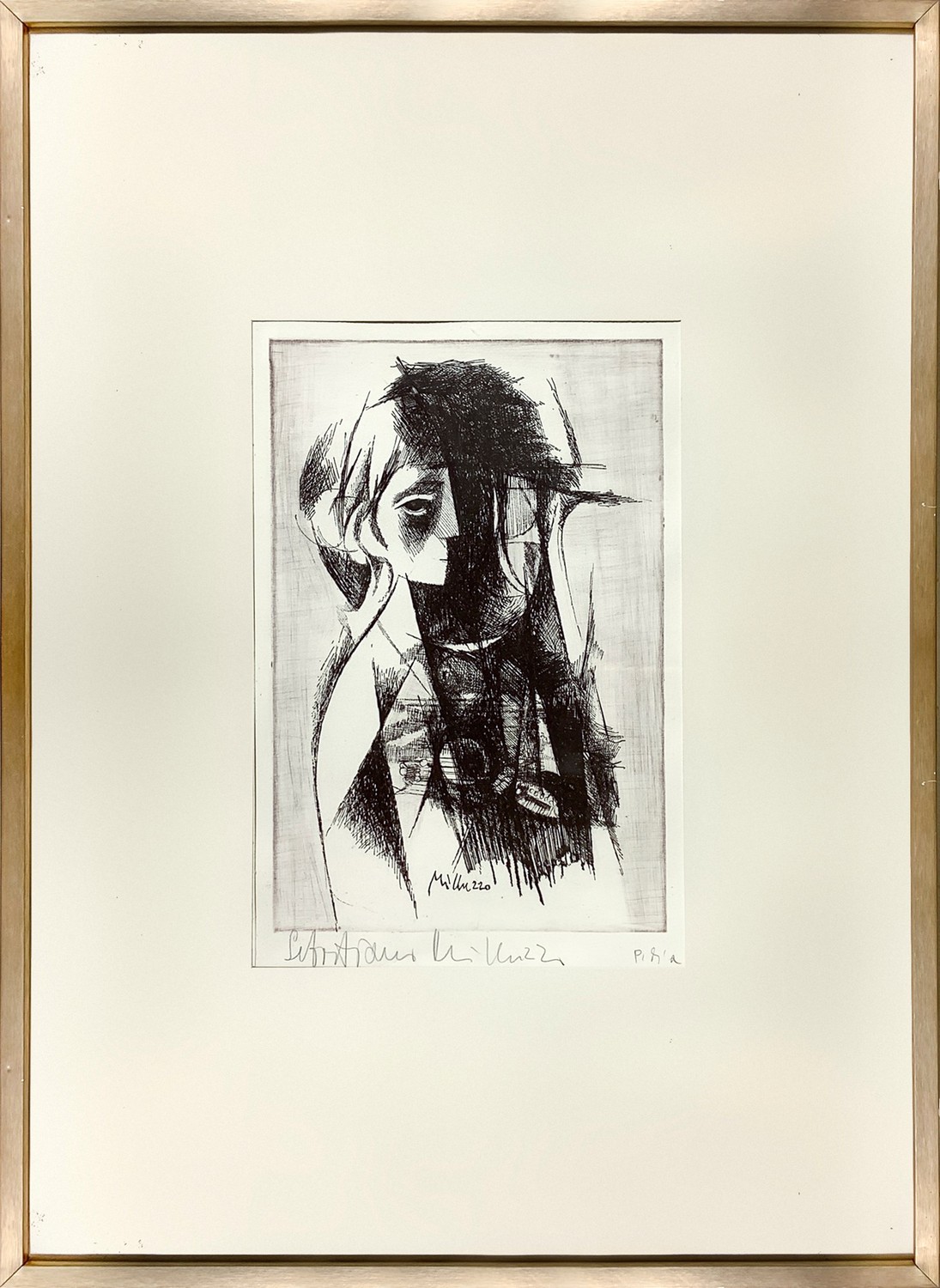 Profilo di giovane. Firmato Milluzzo Prova d'autore 34x21 cm, in cornice 72x52 cm Sebastiano Milluzzo Catania 1915-Catania 2011