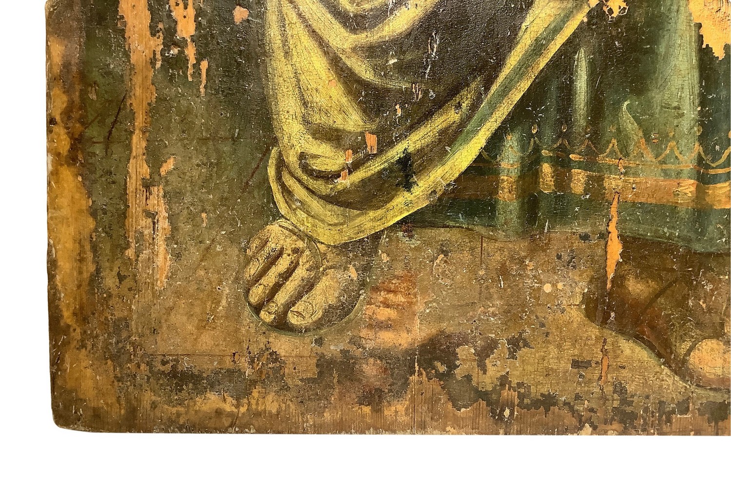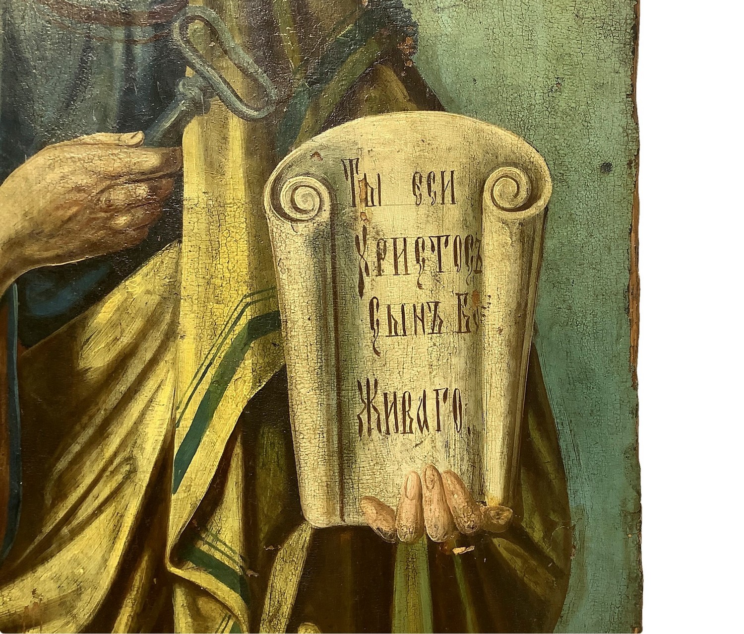 È chiaro che non ci troviamo di fronte a una tavola che tradizionalmente raffiguri un santo i cui tratti rimanderebbero all’ambito d’influenza bizantina, piuttosto si osserva la mano agile di un pittore, legato agli stilemi fortemente latini. Alcuni elementi – sia grafici sia stilistici – riconducono la nostra tavola a quell’area di produzione che è possibile collocare geograficamente a una zona ben circoscritta, in cui era in uso, in ambito liturgico, lo slovanico ecclesiastico, una lingua sviluppatasi a partire dal IX secolo grazie ai fratelli Metodio e Cirillo i quali la utilizzarono per poter tradurre le Sacre Scritture dalla lingua greca, dunque, un’area che abbraccia la Serbia, Croazia, Boemia, Polonia orientale nonché i principati russi.