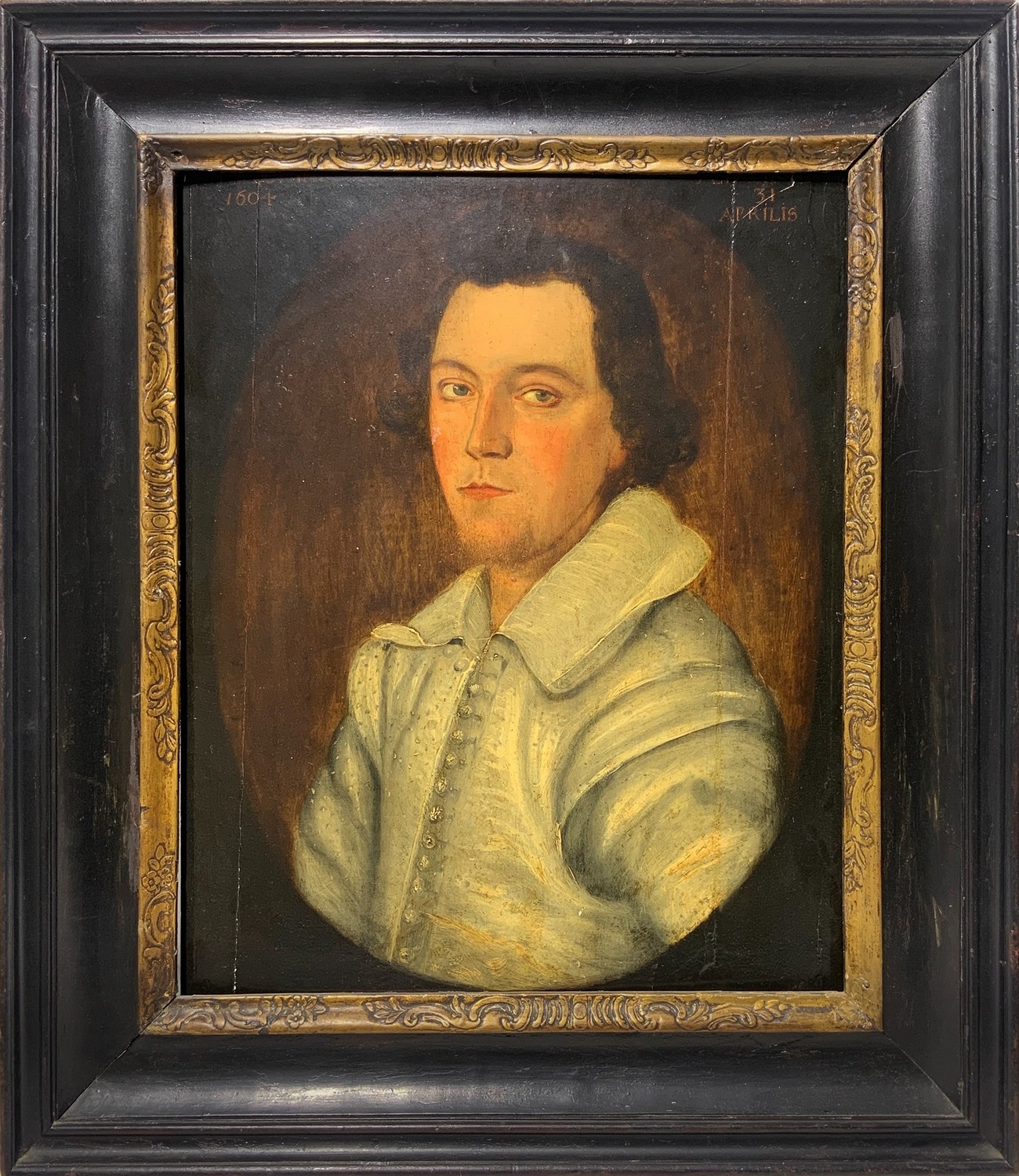 "Personaggio mezzo busto" . Datato in alto a sinistra 1604 Olio su tavola cm 57X46