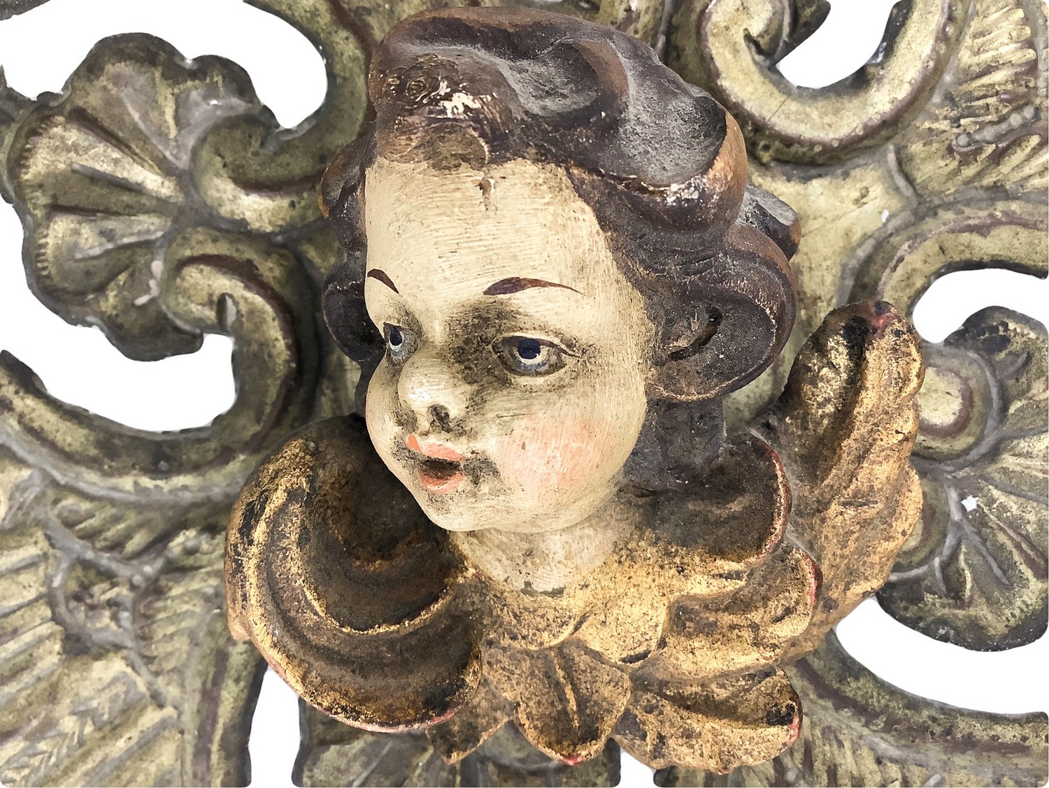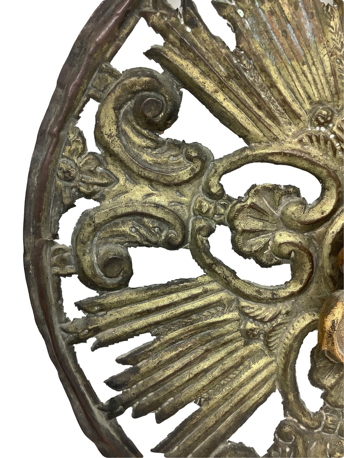 Raggiera in ottone. Raggiera in ottone con testa di zefiro in legno Diametro cm 33 XVIII secolo