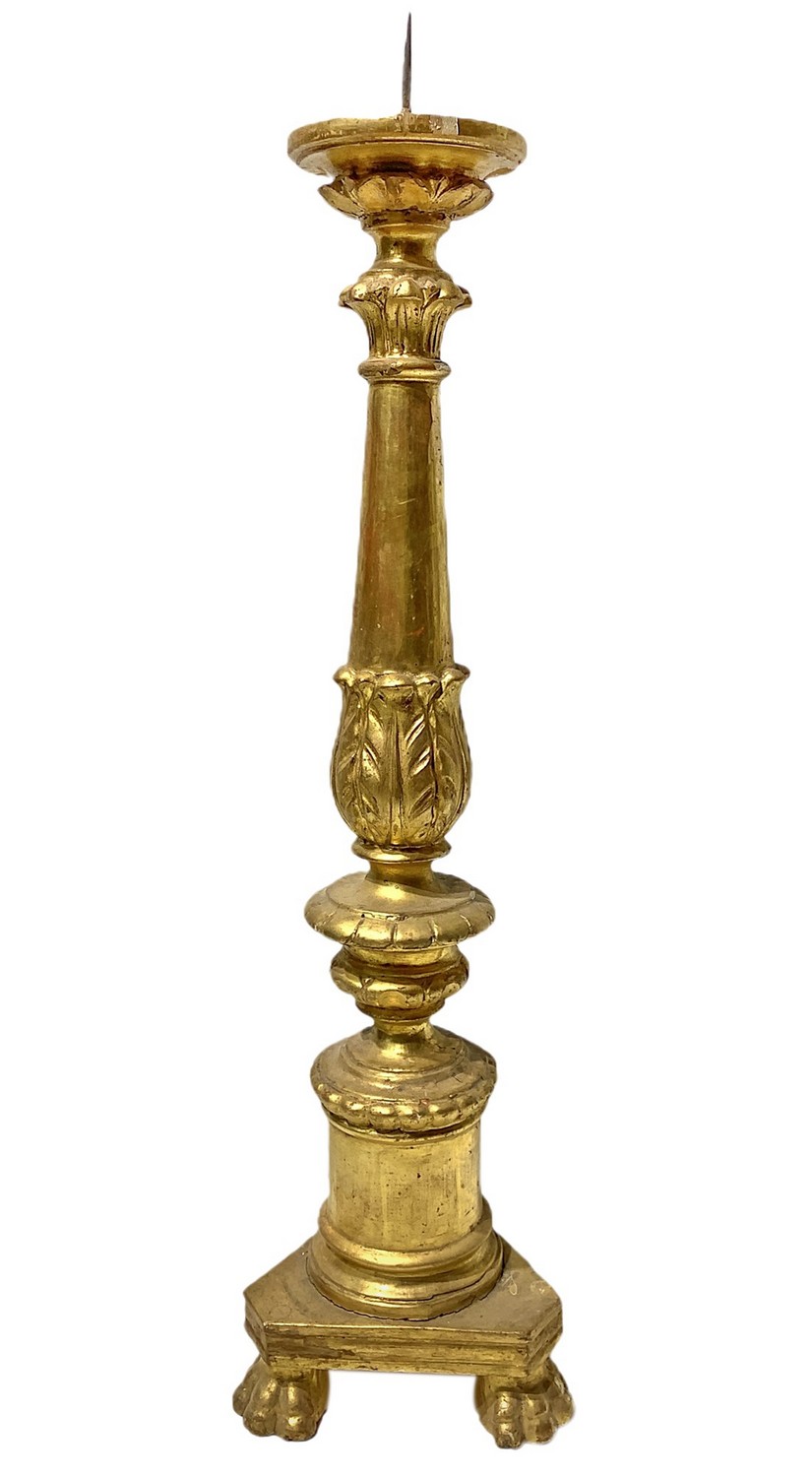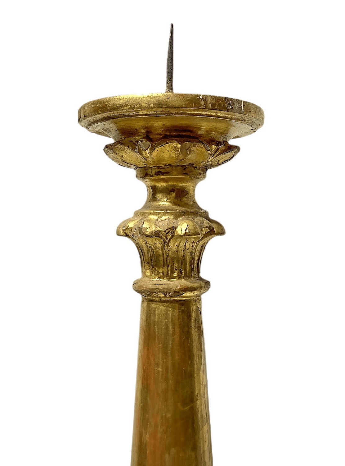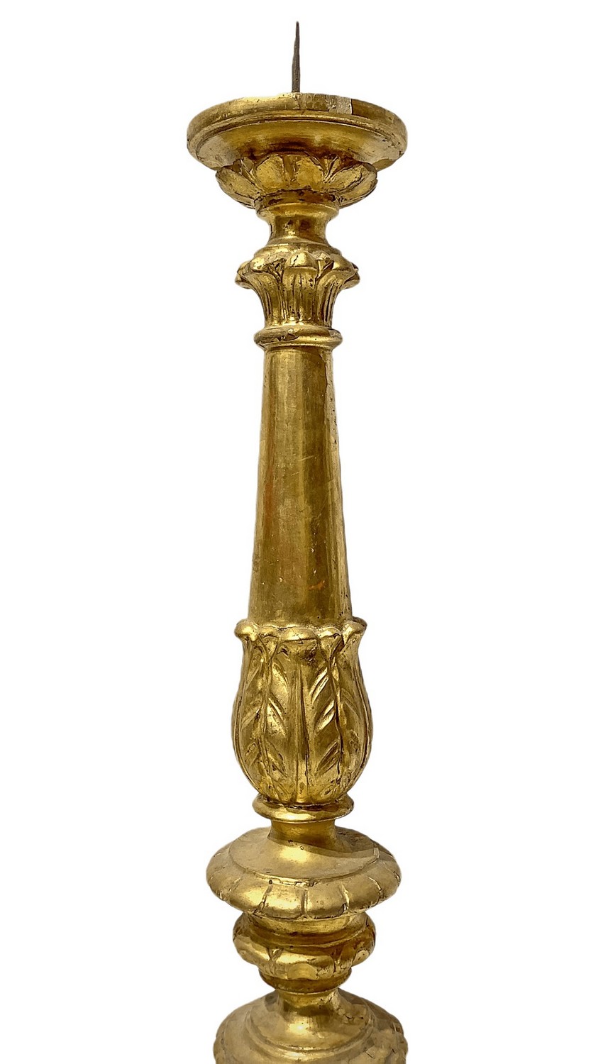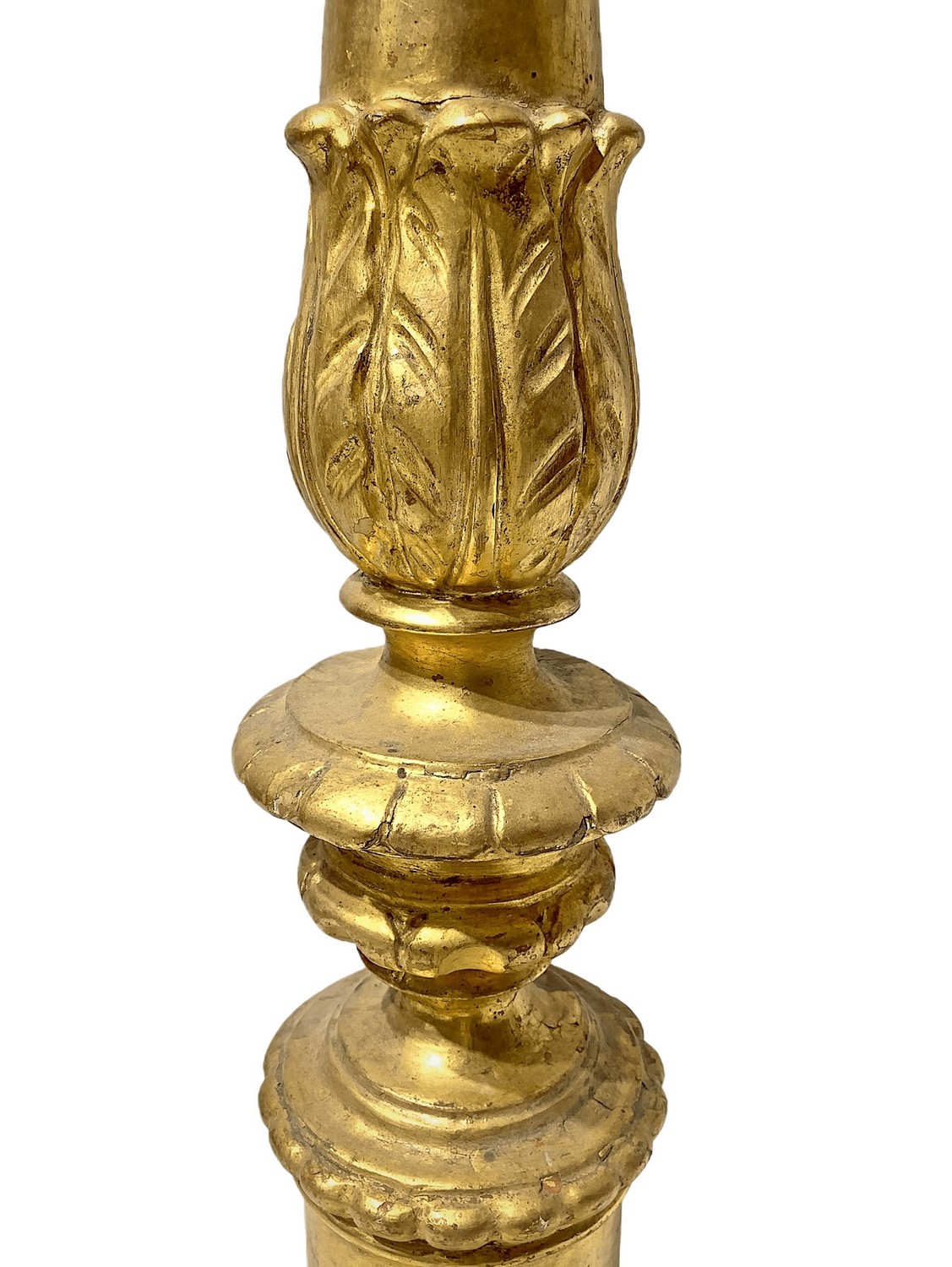 Candeliere in legno dorato.. H cm 62 Fine XVIII secolo.