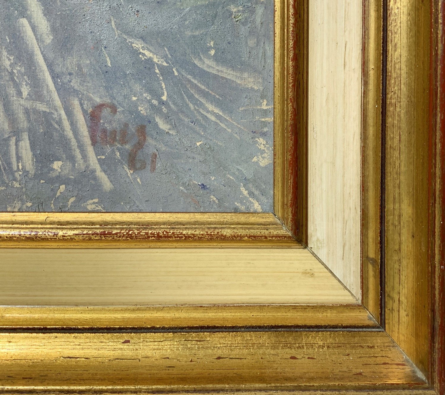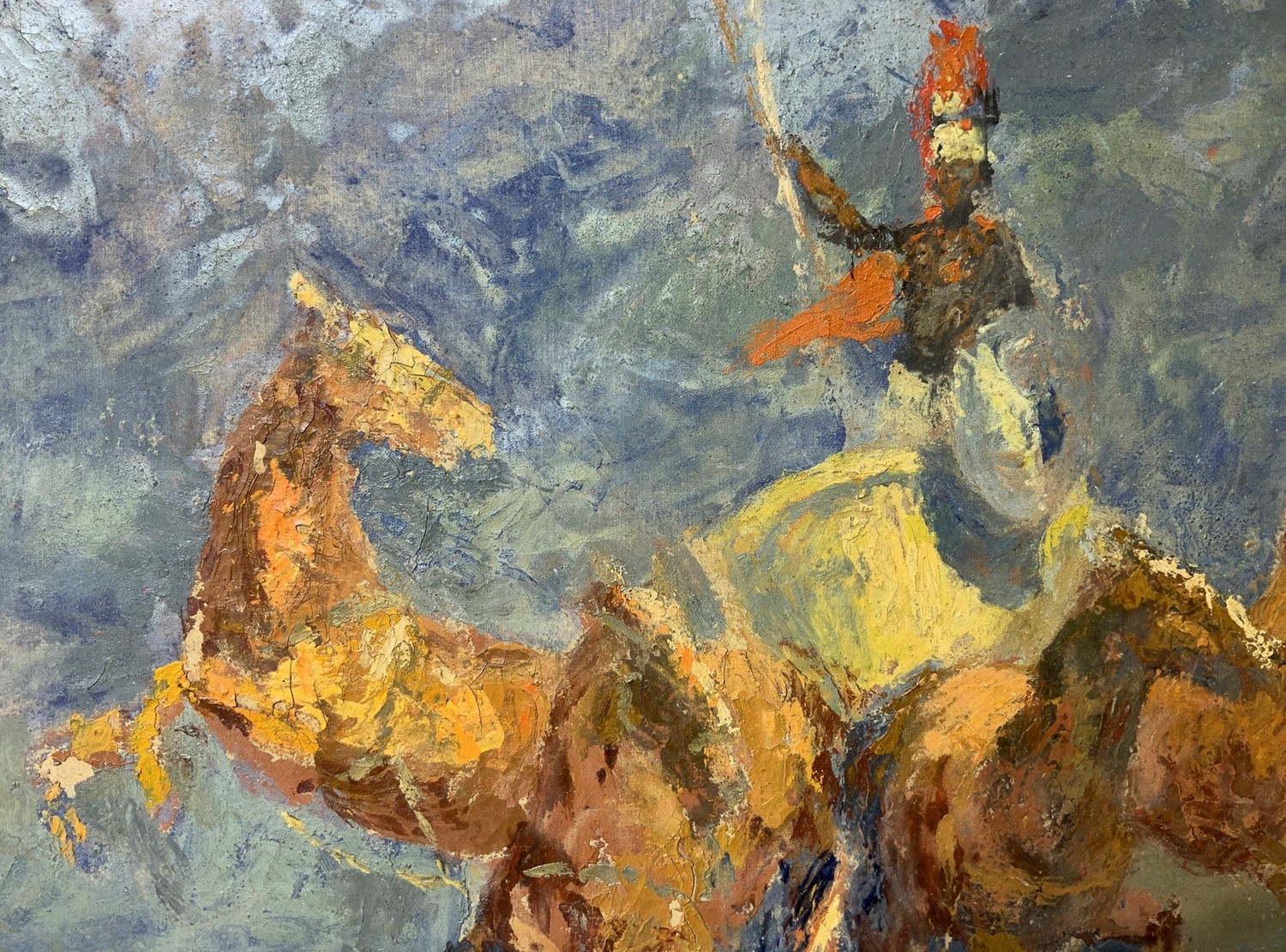 Biga romana con auriga. Firmato in basso a destra Dipinto ad olio su tela H 60x70 cm, in cornice 80x90 cm