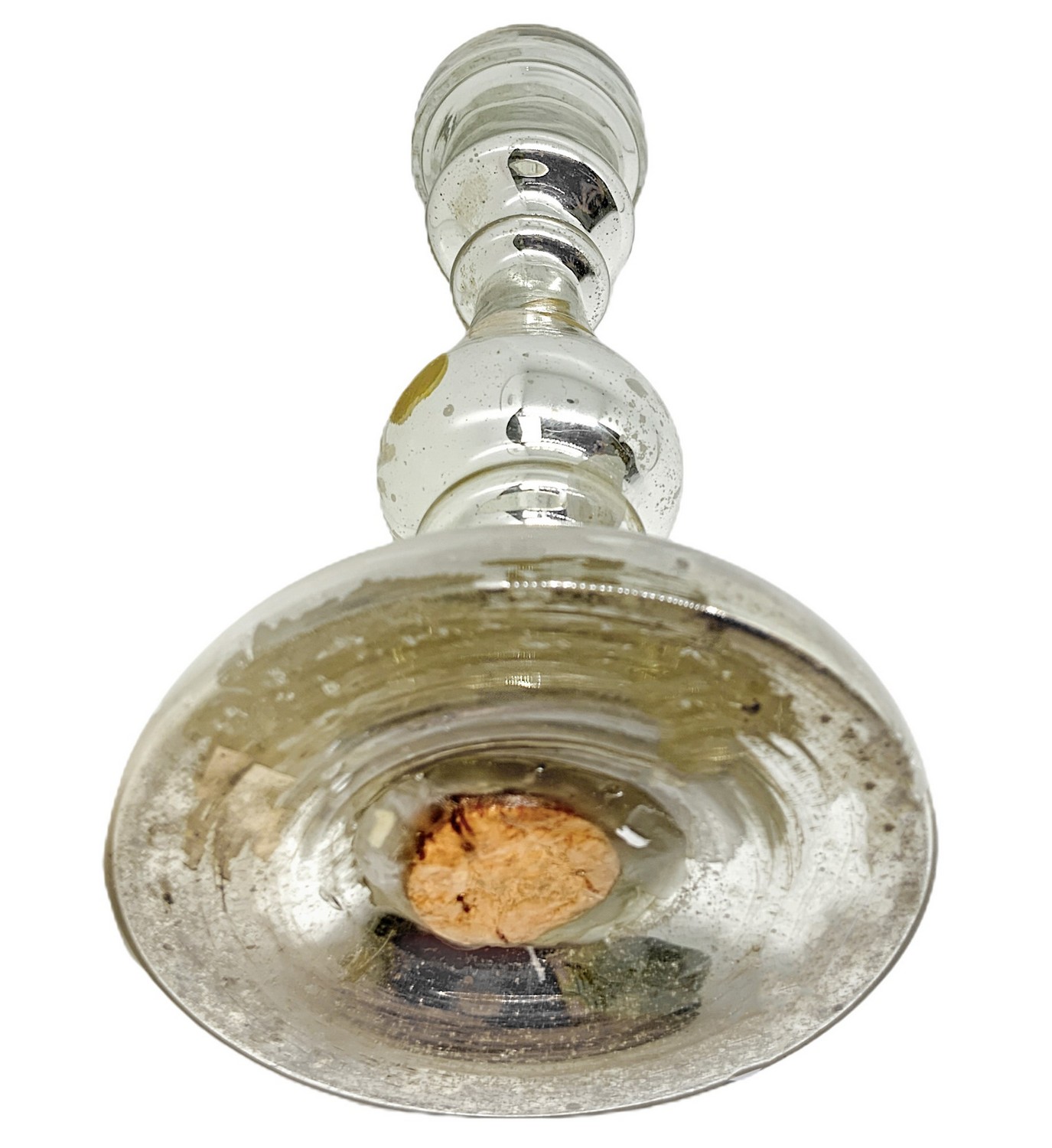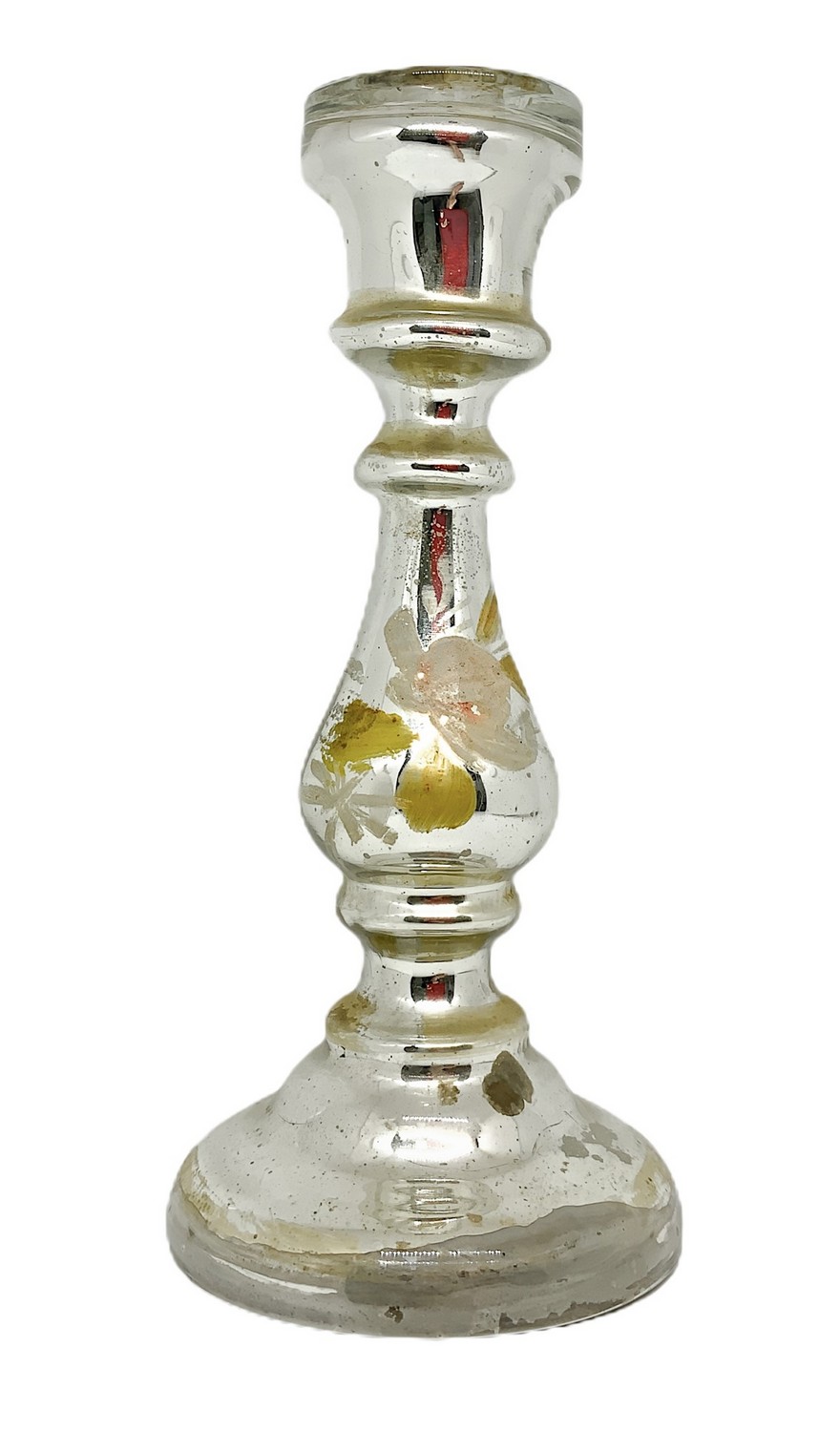 Candelabro in vetro di Murano argentato al mercurio.. H cm 20 XIX secolo.