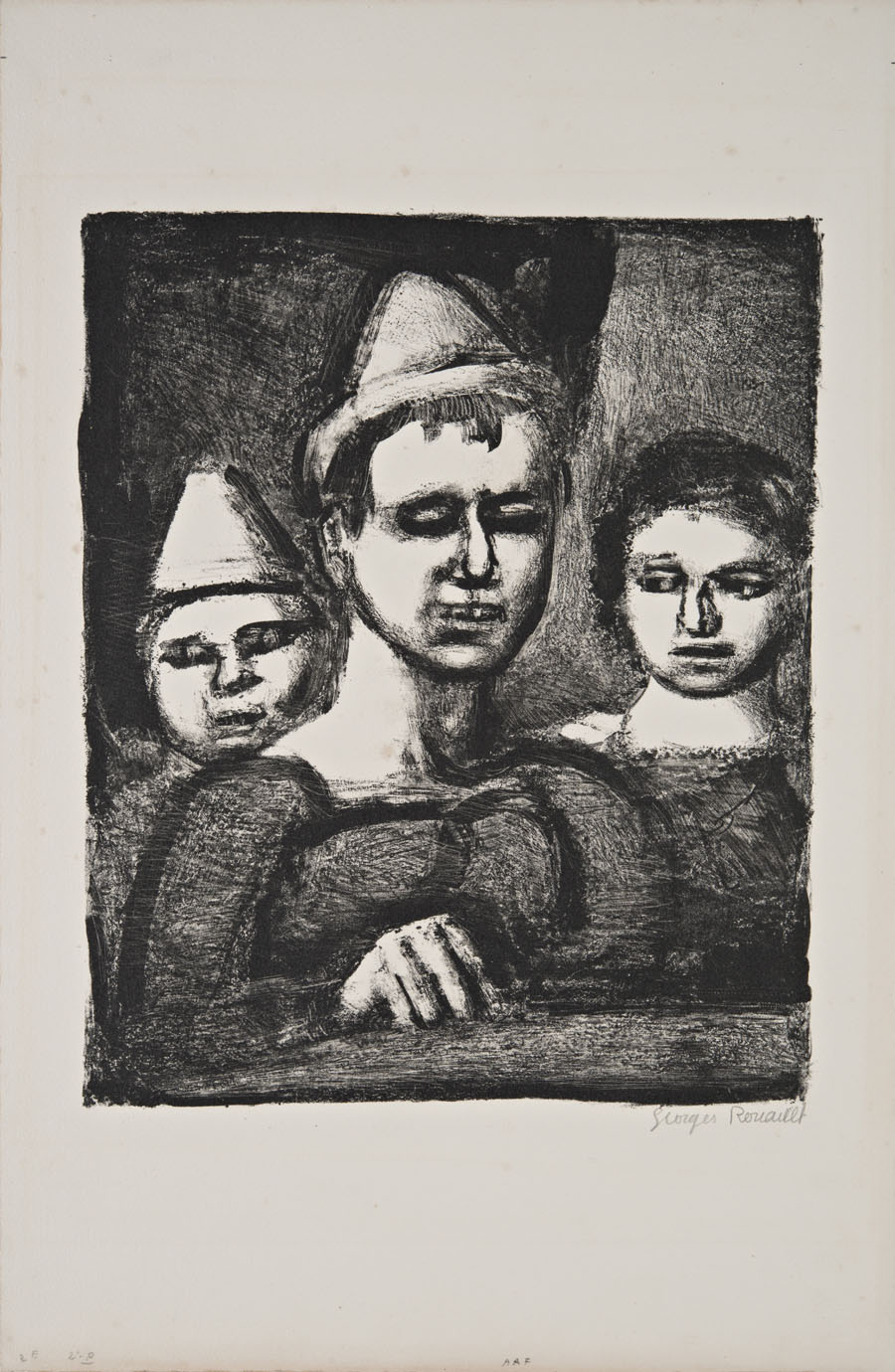 Georges Rouault , Parigi 1871 , 1958 "Trio" (dalla serie "Saltimbanchi") litografia, cm 50x32,5 (ed. su 250) Firmata in basso a destra