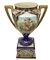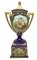 Potiche in porcellana Vienna . con base a plinto e scene di genere entro riserve con bordi in oro. Marchio sottostante alla base. H cm 36 Base cm 12x12 XIX secolo
