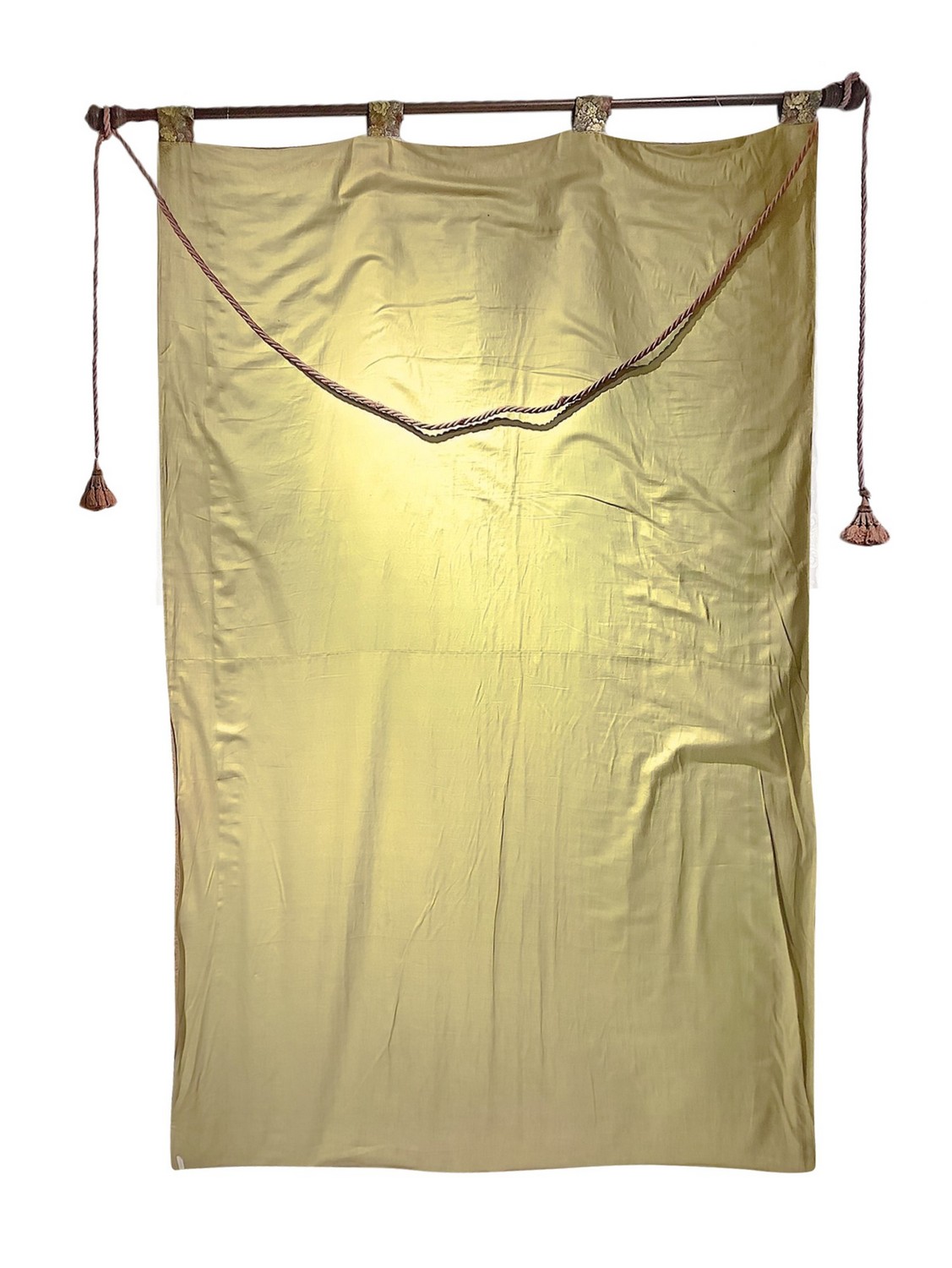 Arazzo riportante scena di genere. Con cornice ricamata in policromia a motivo floreale. Francia. Emulsione H 200 cm x 125 cm Fine XIX secolo