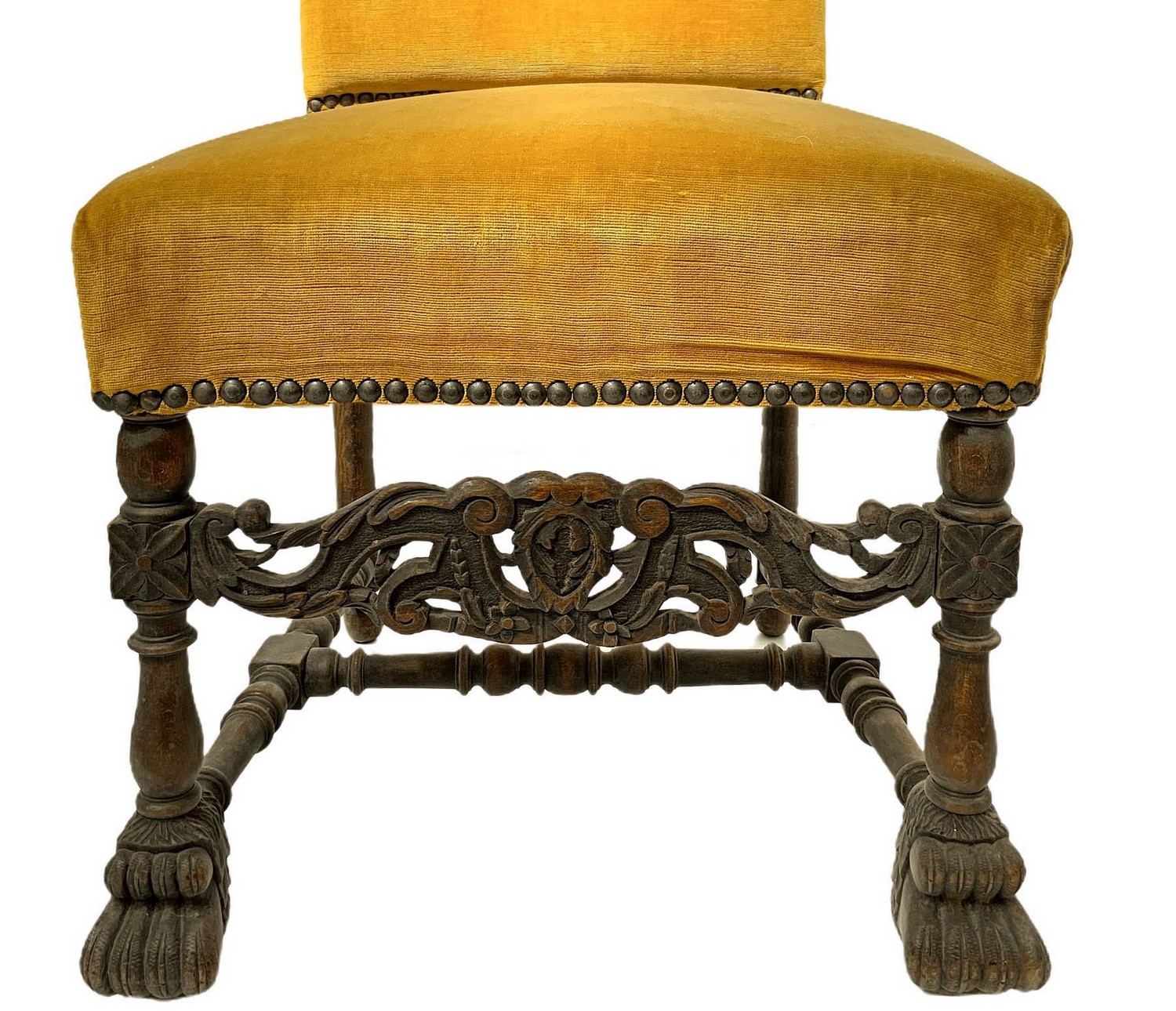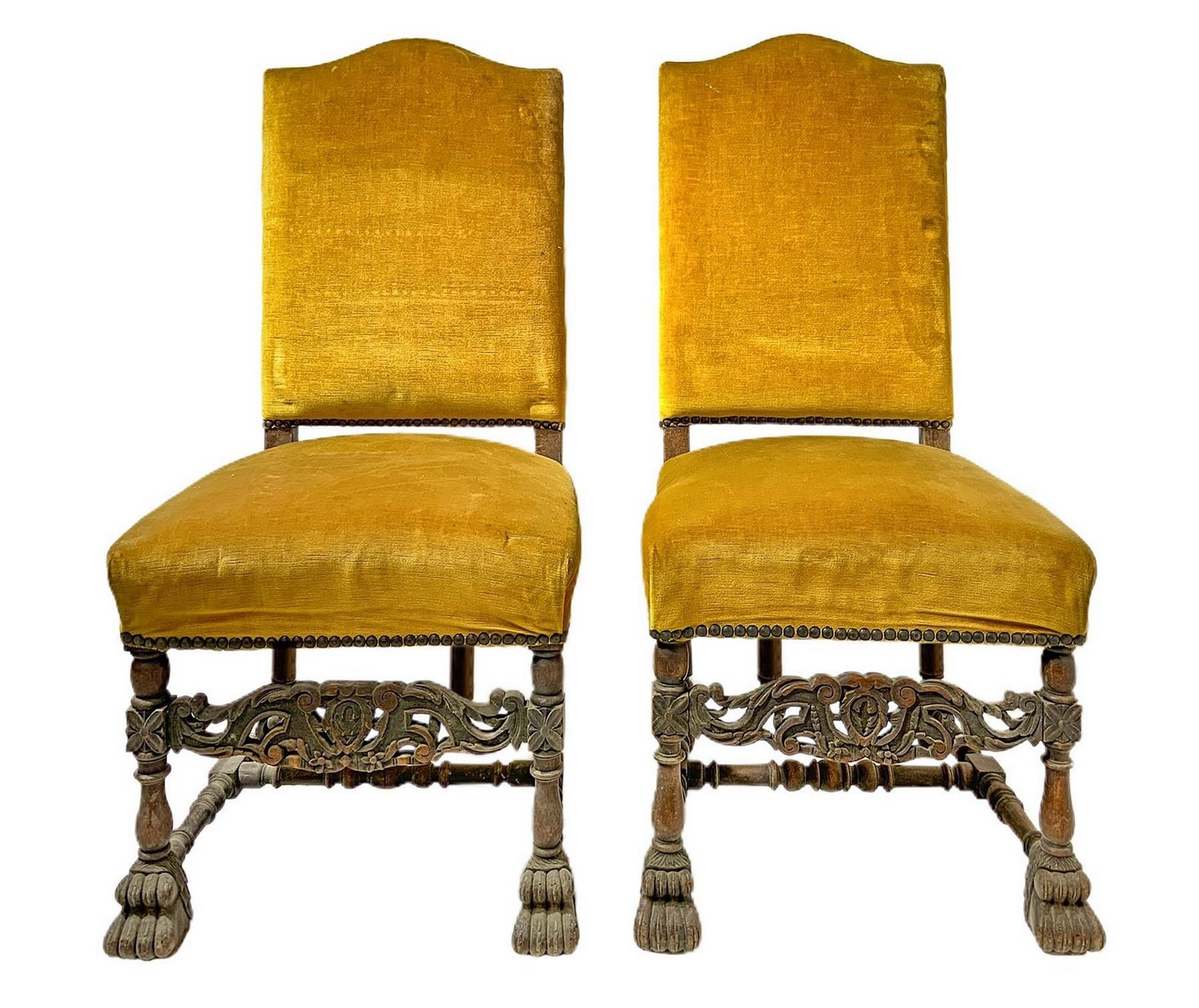 Lotto 302 | Coppia di seggioloni con spalliera alta, tappezzeria in giallo