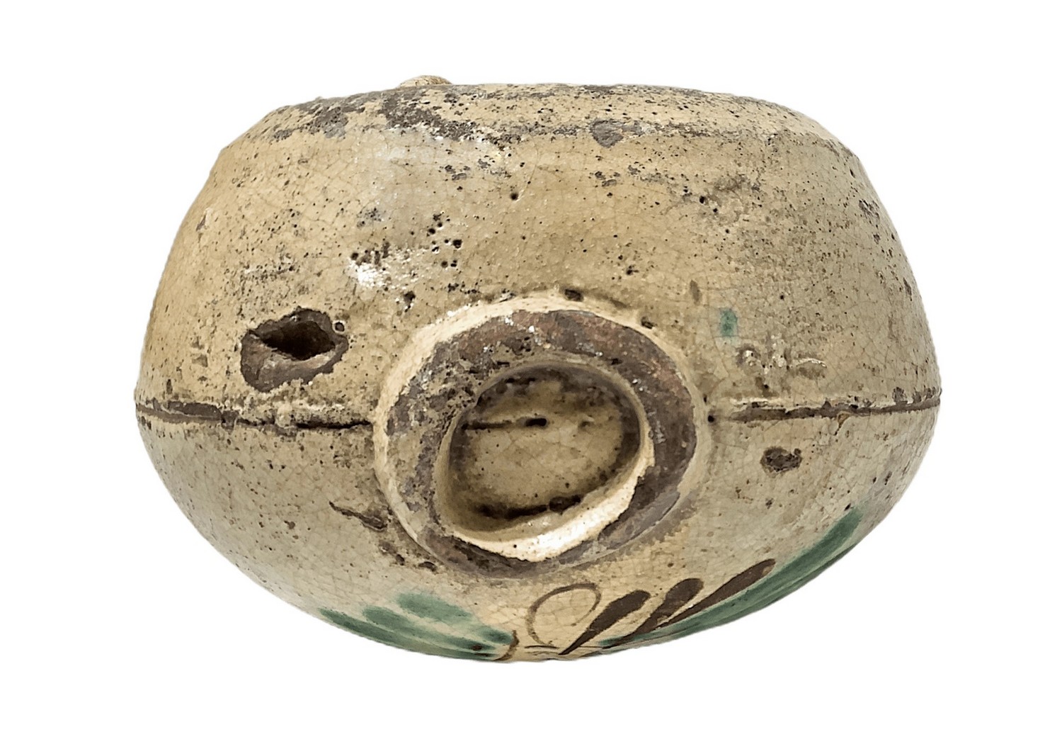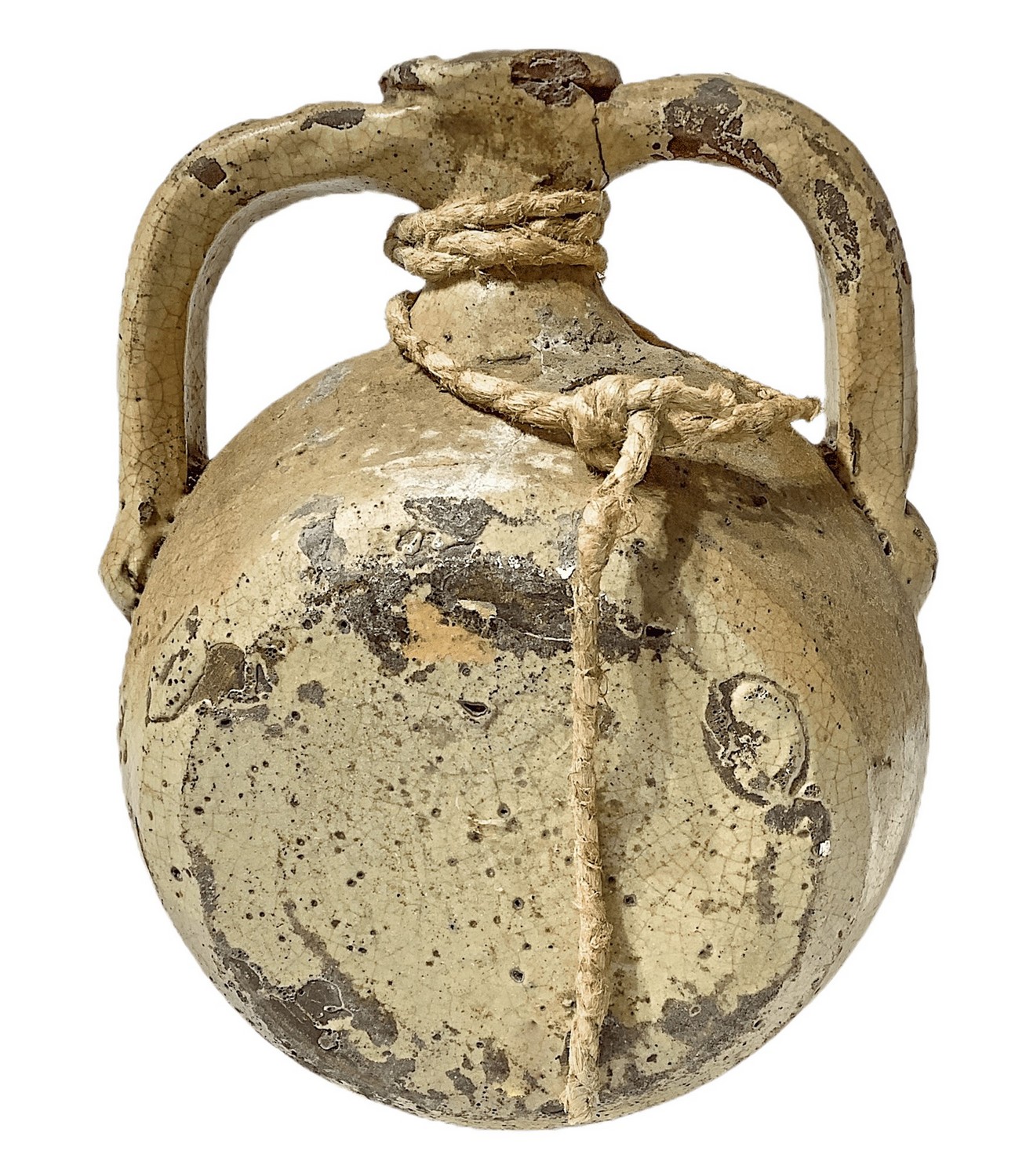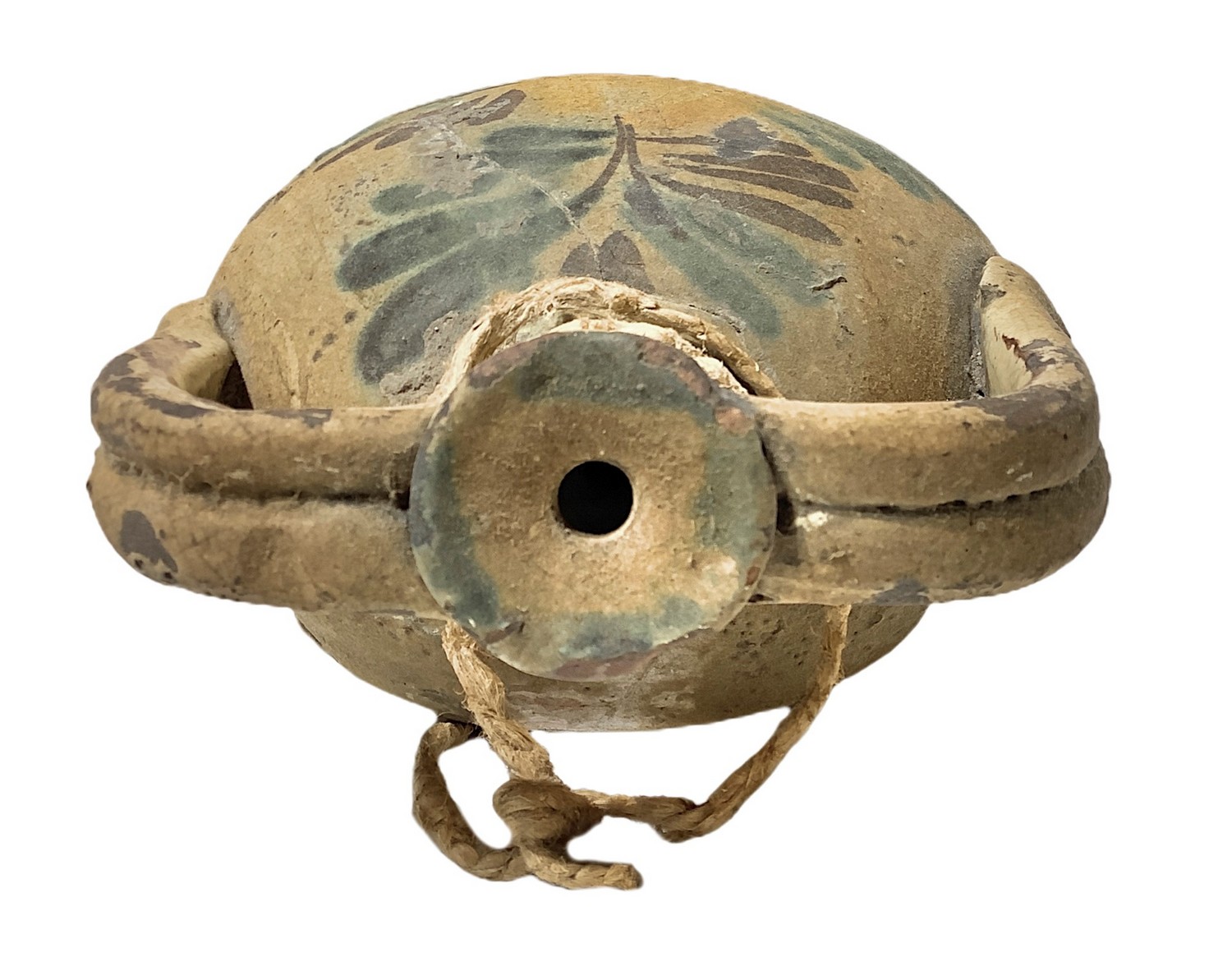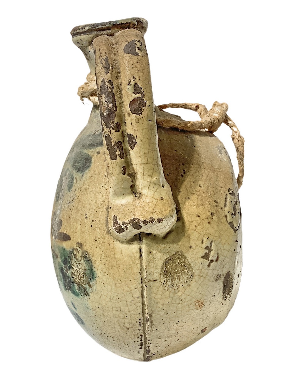 Fiaschetta in maiolica di Caltagirone. Con decorazioni di fiore d'acanto. H cm 24 XX secolo