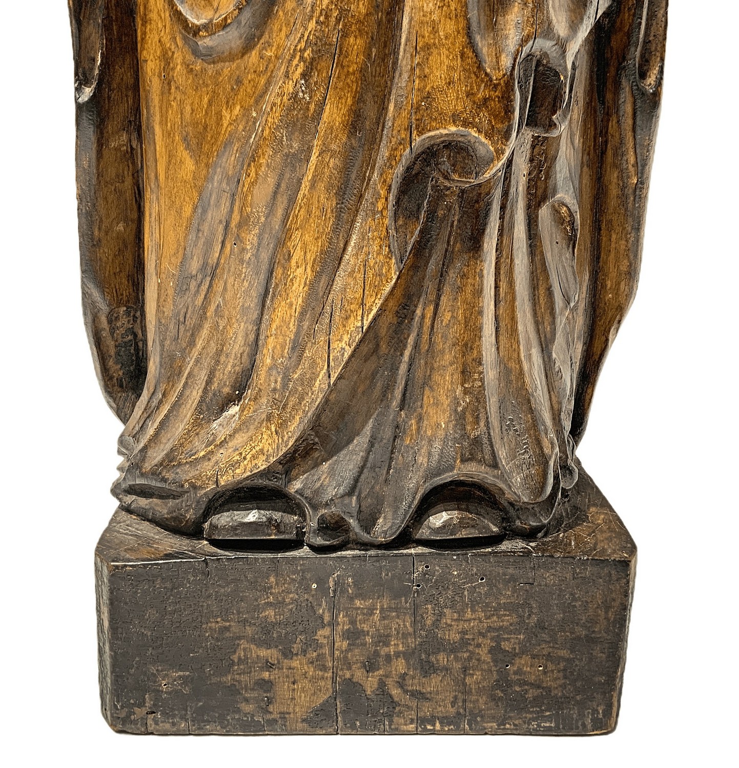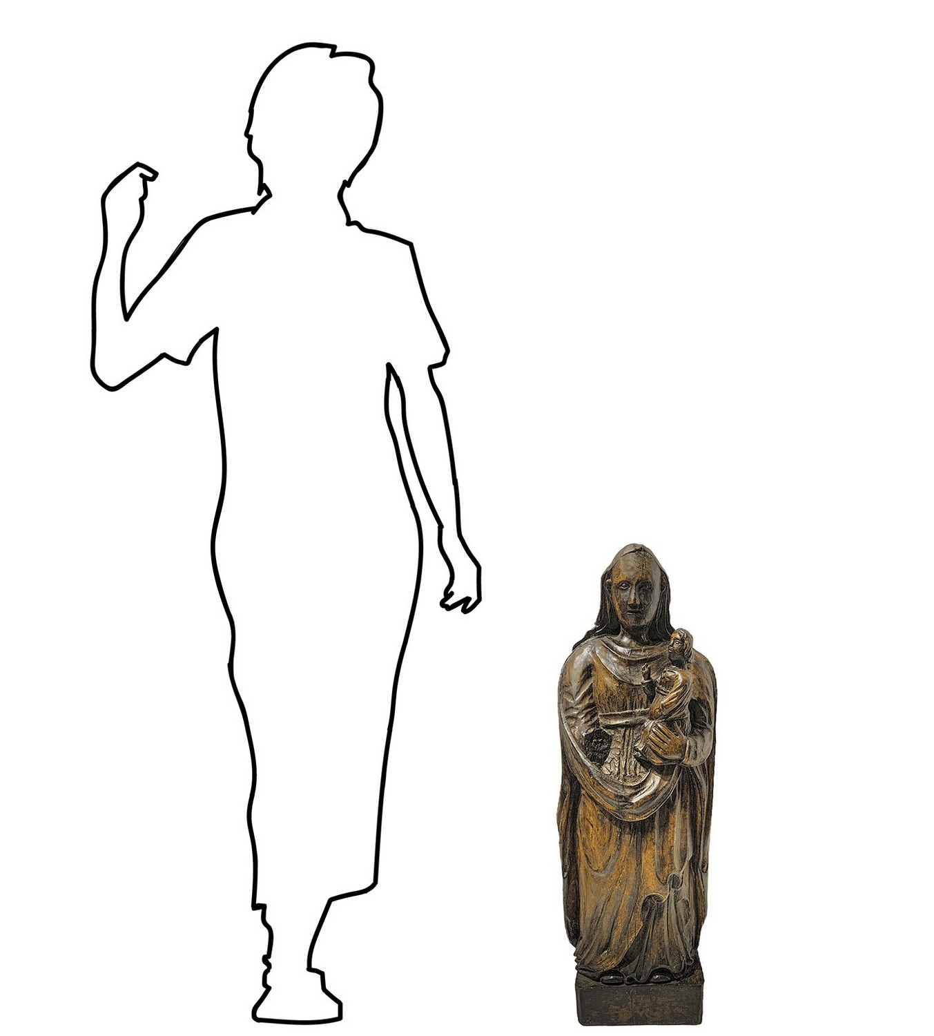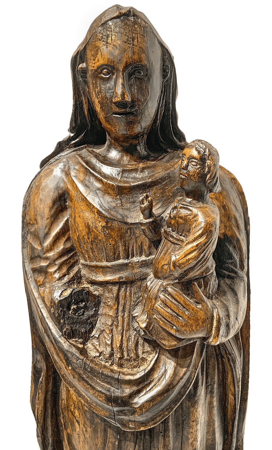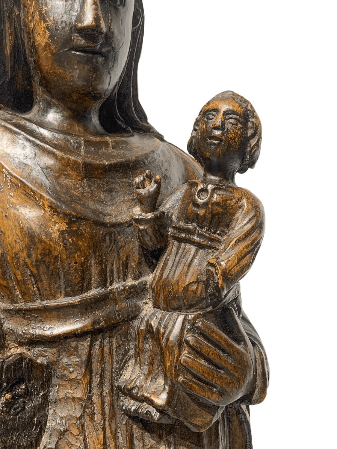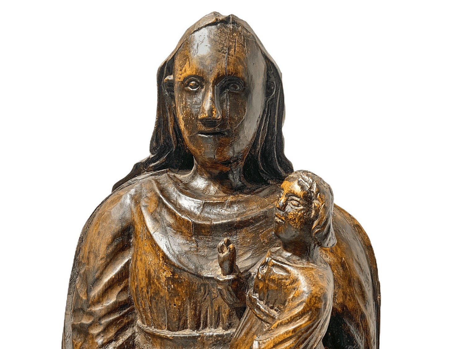 Scultura raffigrante Madonna e bambino benedicente.. H cm 83. Base cm 25x17 Scultore tedesco del XV secolo.