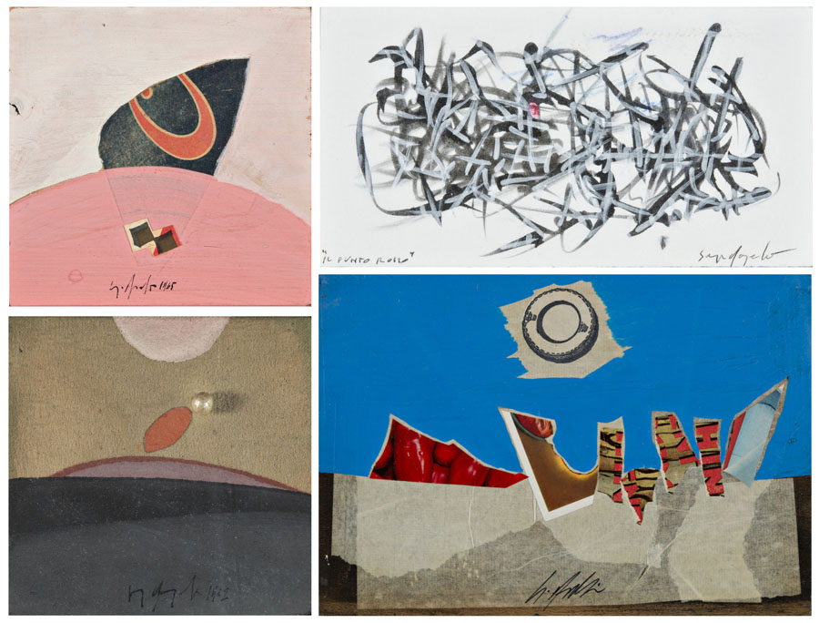 Sergio Dangelo , Milano 1932 , Lotto di quattro opere. Anni '60, olii e tecniche miste su tavola e su carta. Tutte firmate (misure diverse)