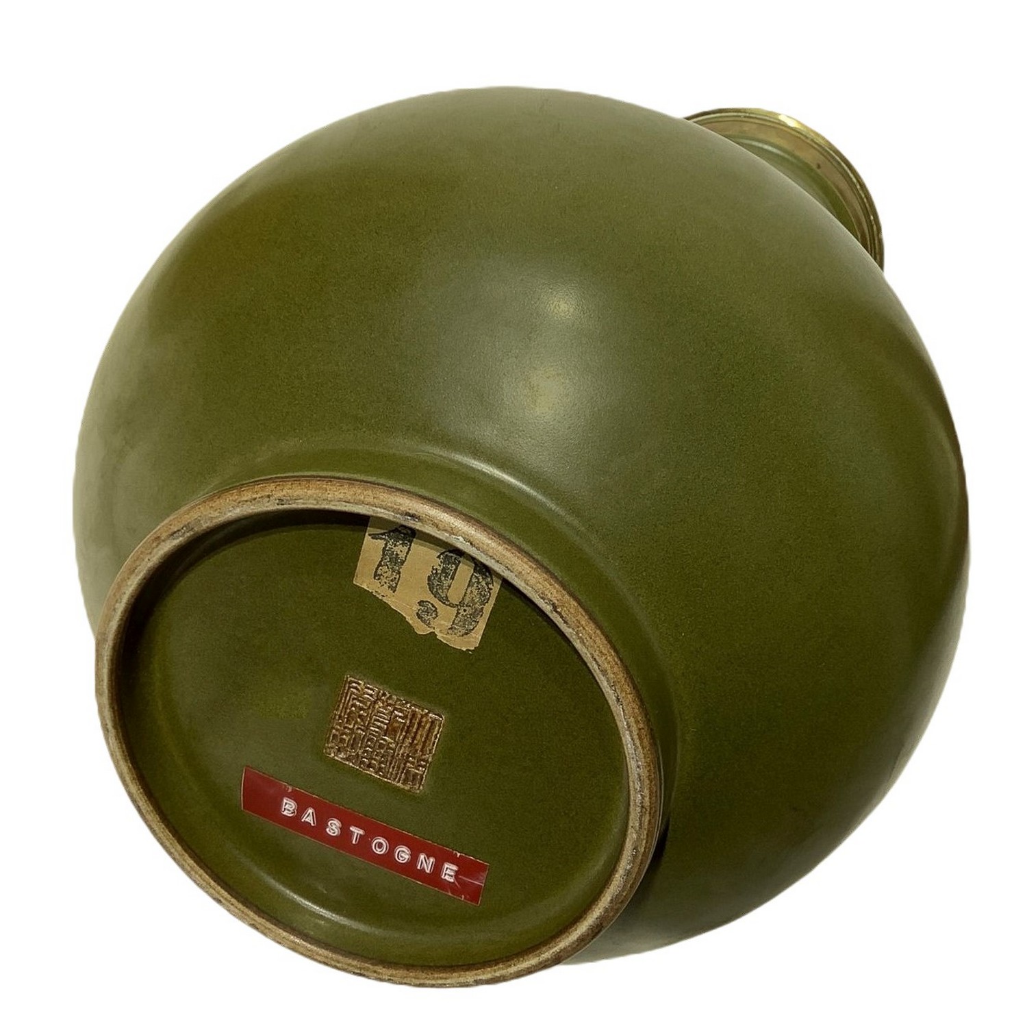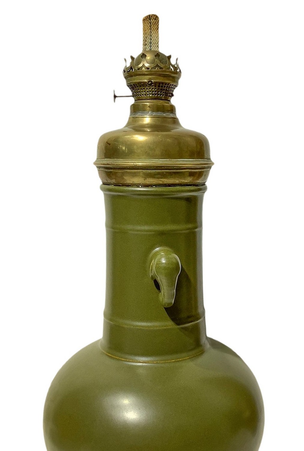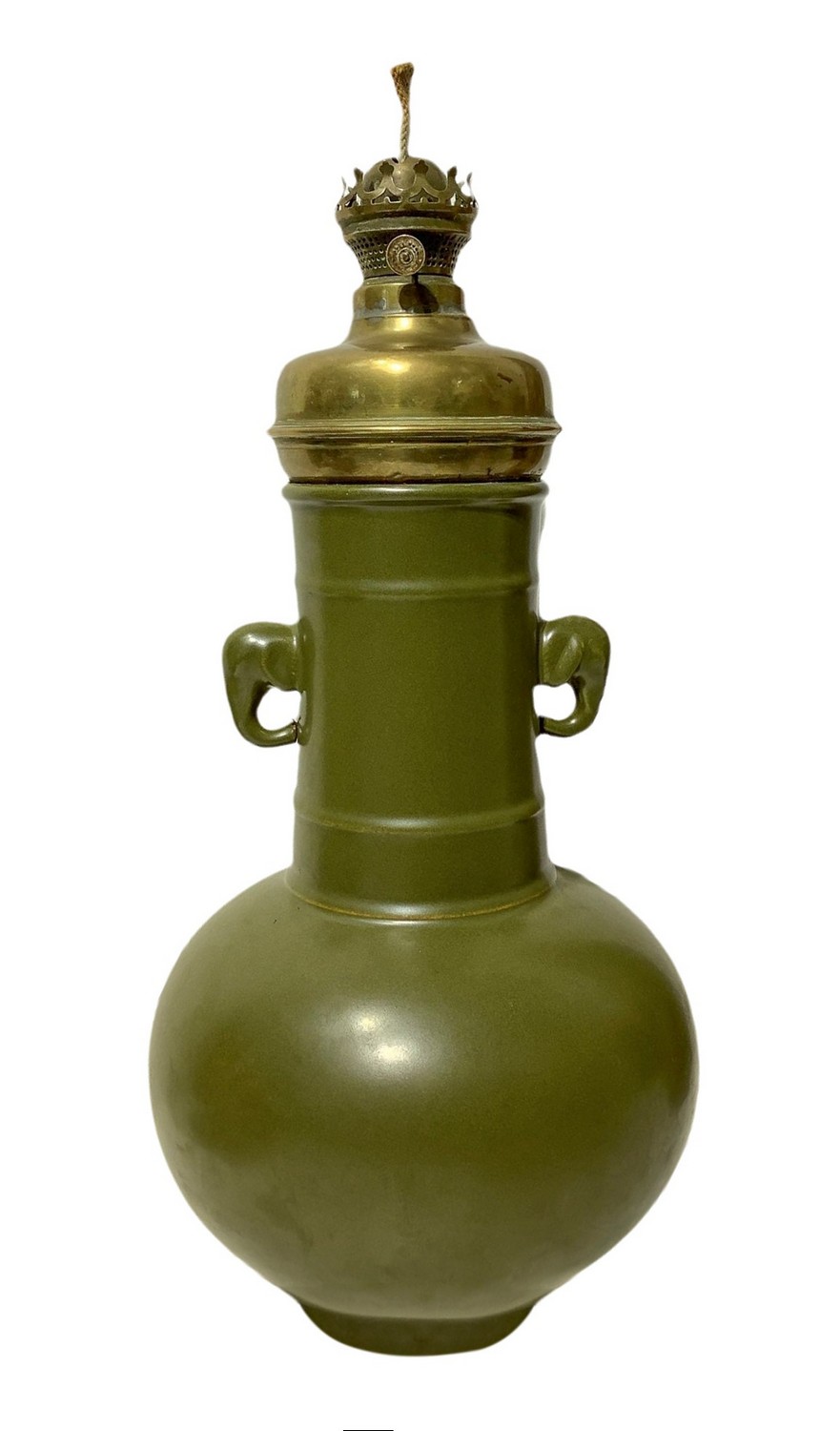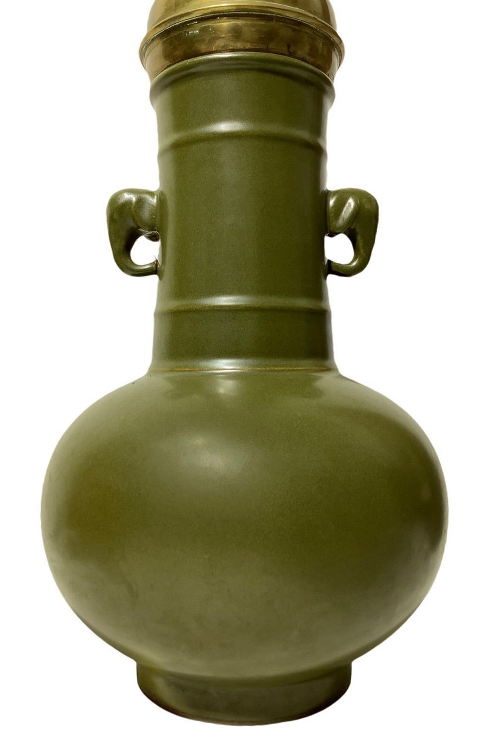 Grande vaso in porcellana cinese con lume. Colore verde petrolio, smalto in polvere di tè. Firmato da Qianlong. H 54 cm XVIII secolo