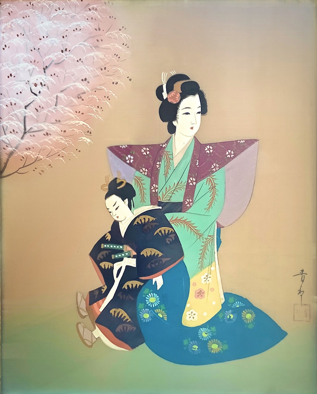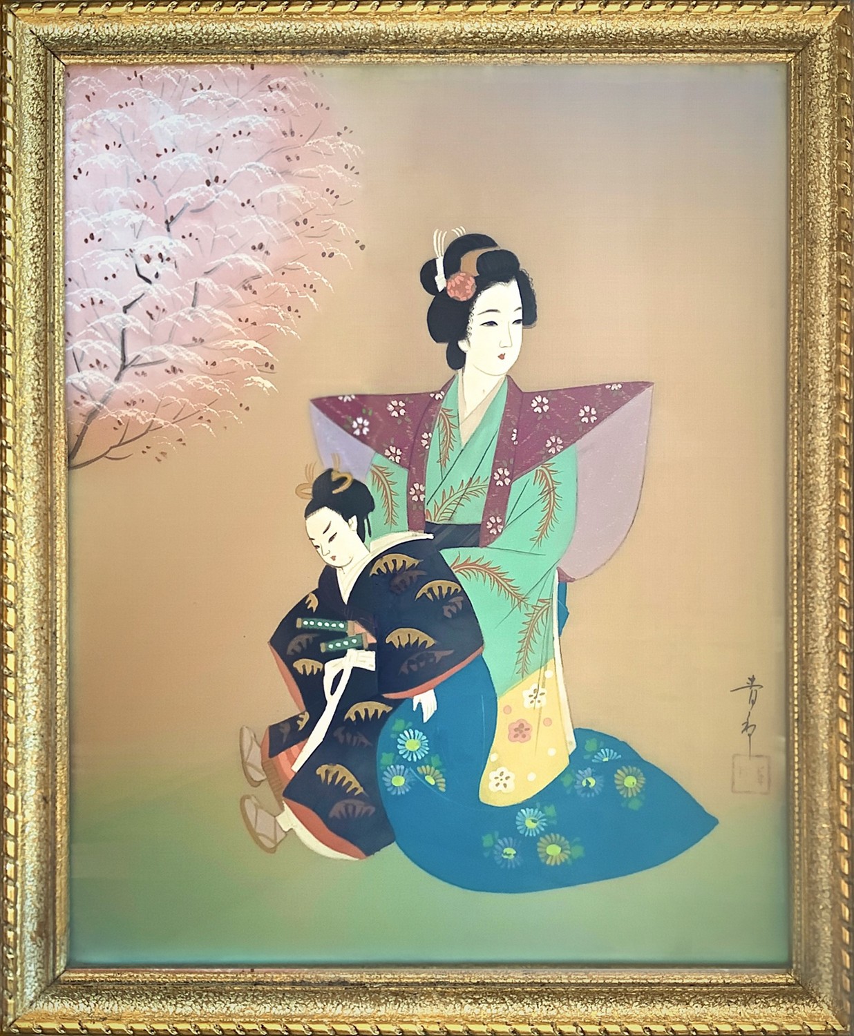 Tempera su seta raffigurante donna in costume orientale.. 44x35 cm