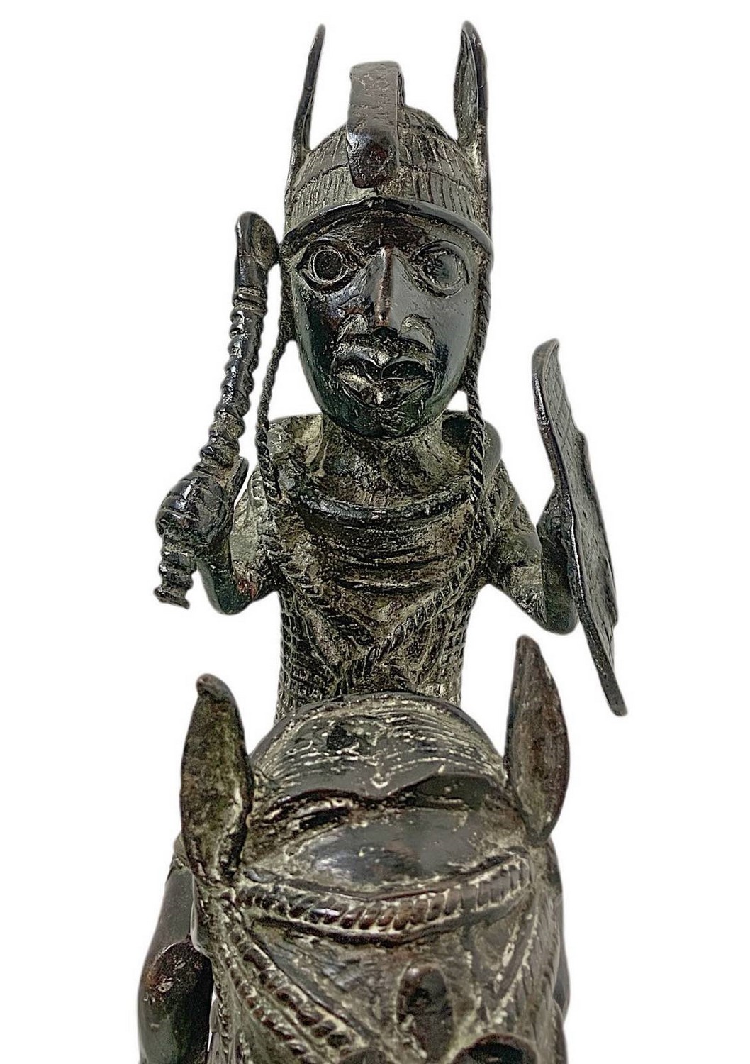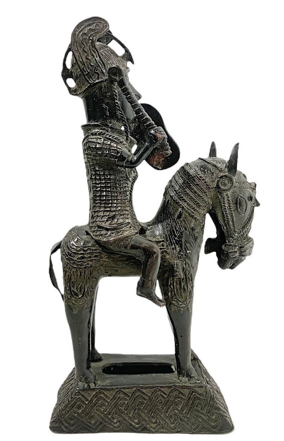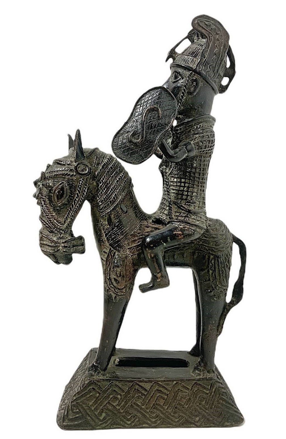 Statua raffigurante cavaliere. Nigeria, Africa Scultura in bronzo h 48 cm Metà del XX secolo