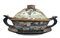 Zuppiera in porcellana con coperchio e piatto.